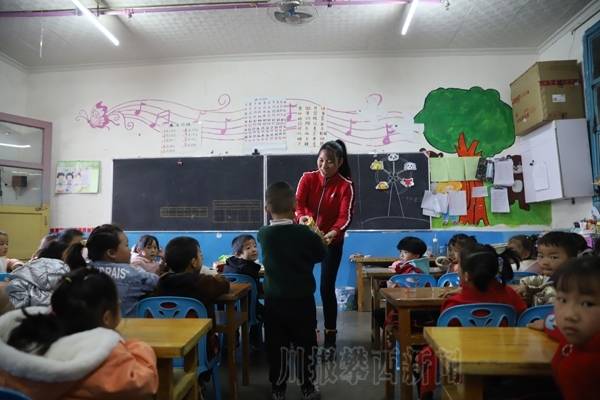 鲹鱼河镇中心幼儿园少数民族学生有80名左右,其中有不少孩子的第一语言是彝语。有的小朋友刚入学时不会说汉语,完全听不懂普通话。老师们通过其他会彝语的小朋友一起来帮助这部分小朋友,通过学习,现在这部分孩子的普通话表达和其他同学一样好。