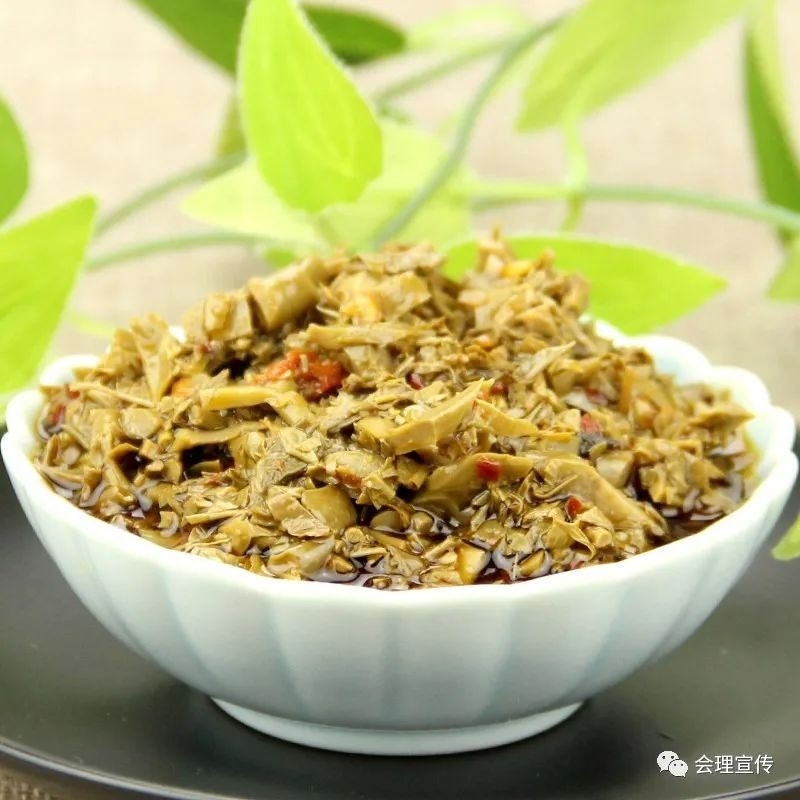会理人喜欢的传统凉菜。选择肥瘦相间的带皮猪腿肉,煮熟,切成薄片,加香椿,拌匀,浇上一勺滚烫的红油,爽滑、细嫩的猪腿肉晶莹透亮,细碎的香椿让味觉苏醒在春天里。香椿拌鸡,做法相似,鸡肉的香味扑鼻而来,再撒上香椿,山野菜肴的拙朴与沉稳呼之欲出。