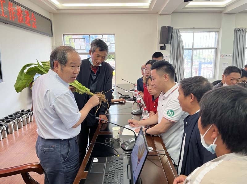 培训中,中国农技协会理烟草科技小院首席指导老师、全国烟草绿色防控首席技术专家、西南大学烟草植保团队丁伟教授先后向参会人员介绍了会理烟草根茎病害的主要种类、解析了影响病害发生的主要因素、提出了烟草健康和病害绿色防控关键技术,帮助会理烟区烟农找准问题和原因、明确有效应对方法。