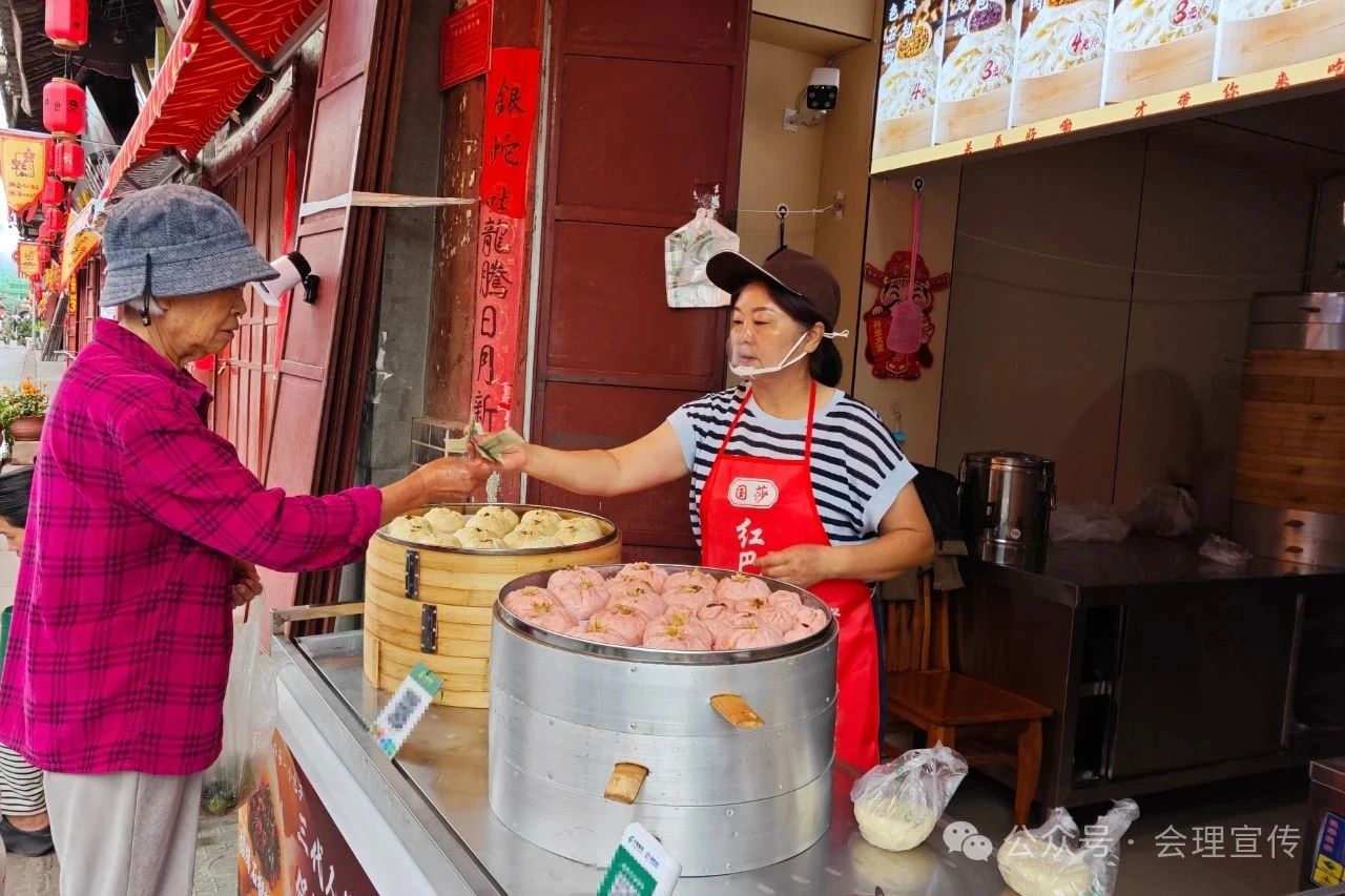 北街76号的小幸运咖啡店是目前古城内唯一咖啡店,店铺的入驻不仅给古城带来了现代气息,还为游客提供了小憩的场所,咖啡店将推出各类石榴饮品及石榴咖啡。咖啡店对面的“会礼味道”“食”榴抓酥包,则用石榴汁将包子皮染成了粉红色,里面包上香菇、火腿、野生菌等馅儿,会理传统抓酥包也吃出了新的味道。