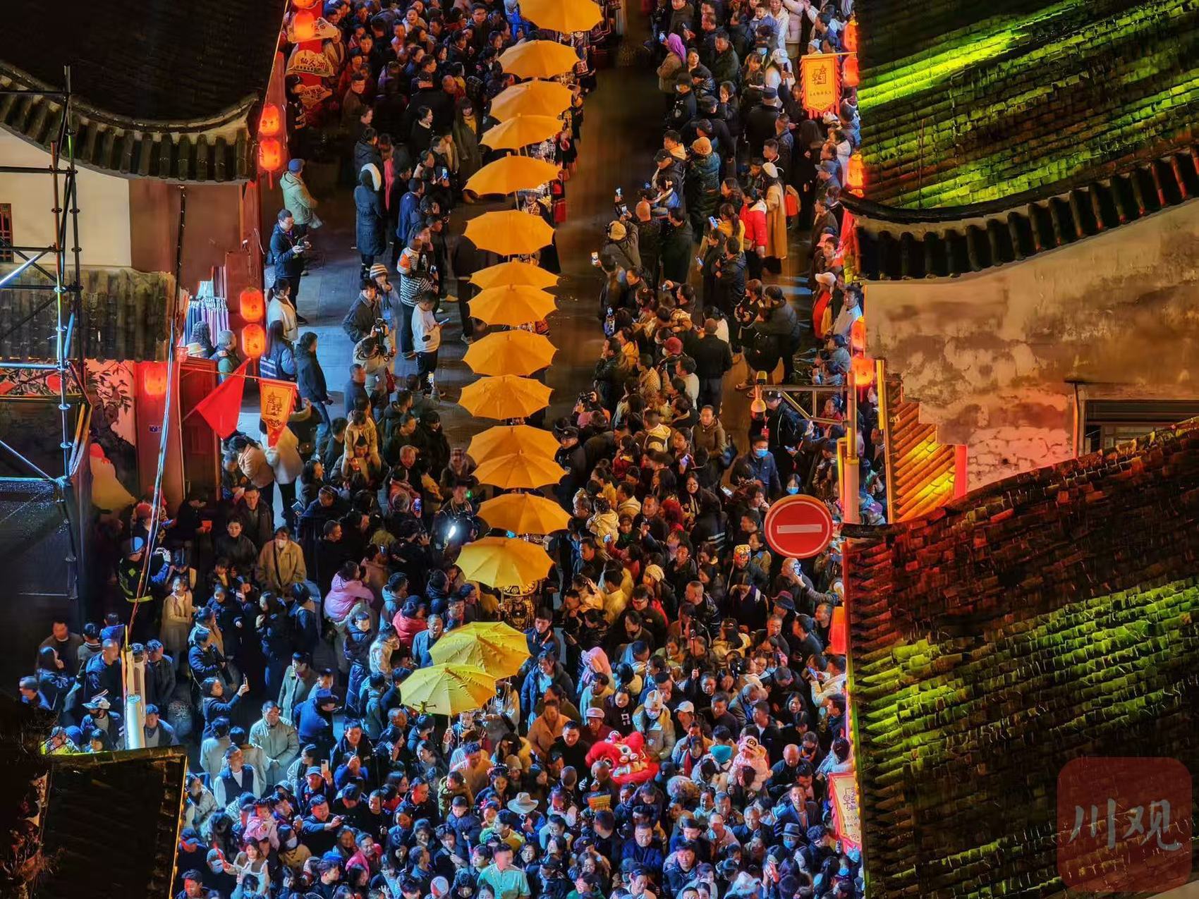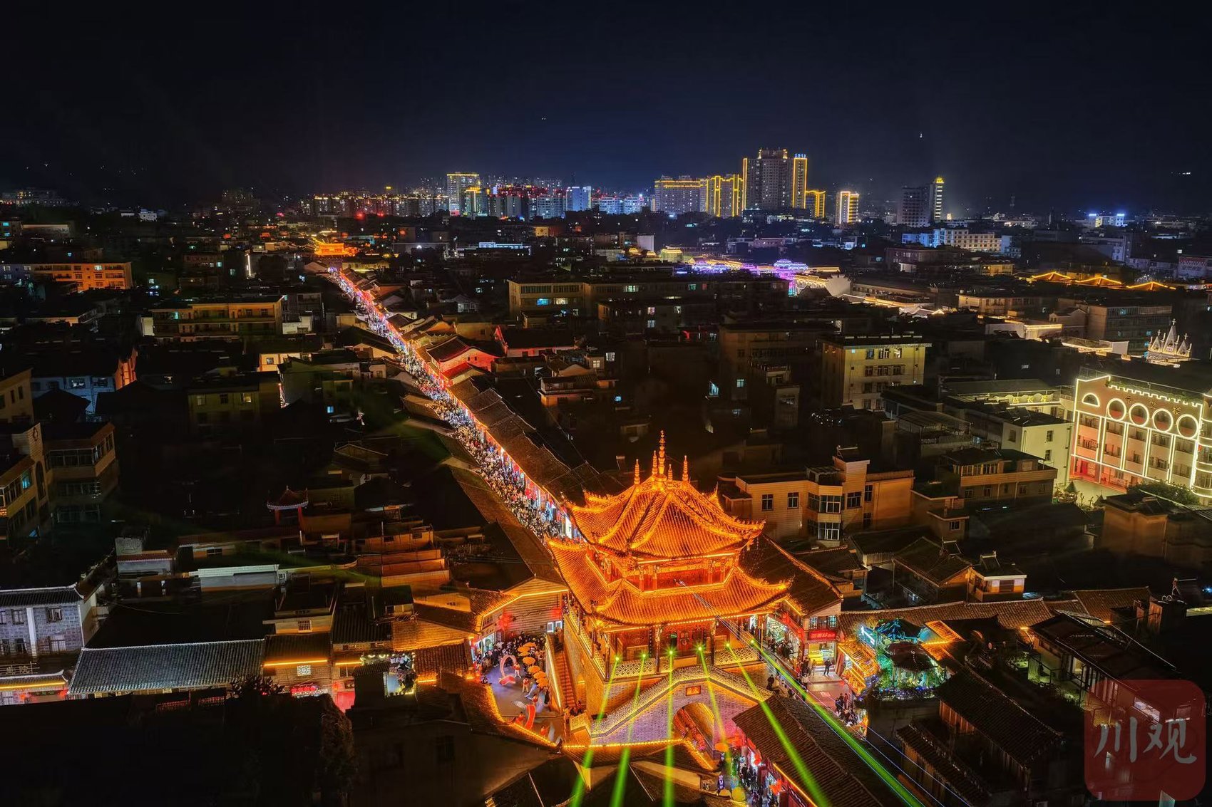 12月14日19时30分,备受瞩目的“一眼千年烟火会理”——夜游古城活动如期上演。