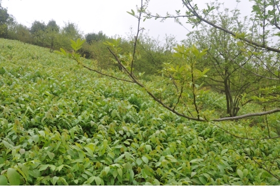 来到该村青花椒基地,看到的是成片的青花椒林,花椒林下,有套种了白魔芋的,或种植豌豆的和蚕豆的、套种植蔬菜的,还有在花椒林中育核桃苗的,到处是青花椒套种其它作物的“青花椒+”特色产业发展新模式。
