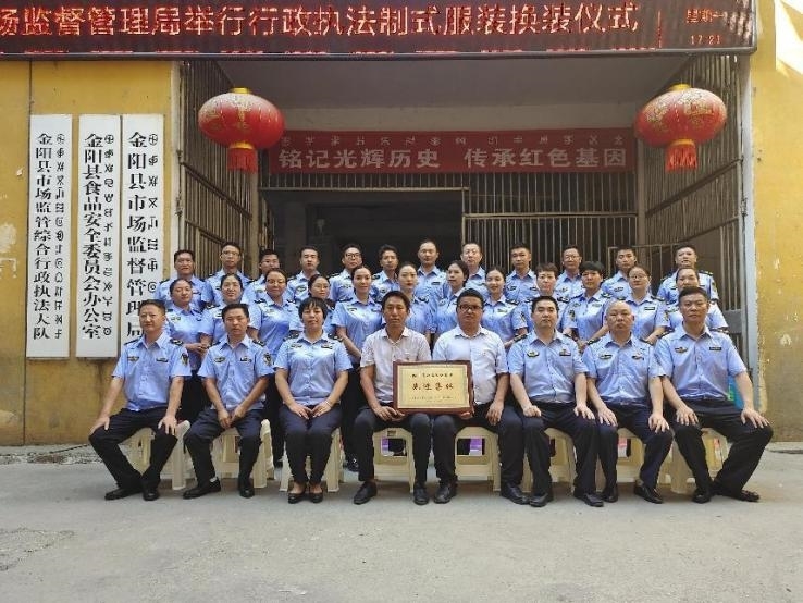 四川在线消息(文/图 龙霞 朱金权)7月11日下午,金阳县市场监督管理局举行行政制式服装换装仪式,标志着金阳县市场监管队伍自此将以崭新的形象开展行政执法工作。