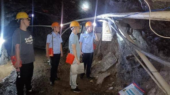 四川在线消息 (文/图 王宏涛 黄丽)8月10日,金阳县安委会办公室组织县应急管理局、县公安局(治安大队)、自然资源局、发改经信局对金阳县湘赣矿业有限公司开展安全生产督导检查。