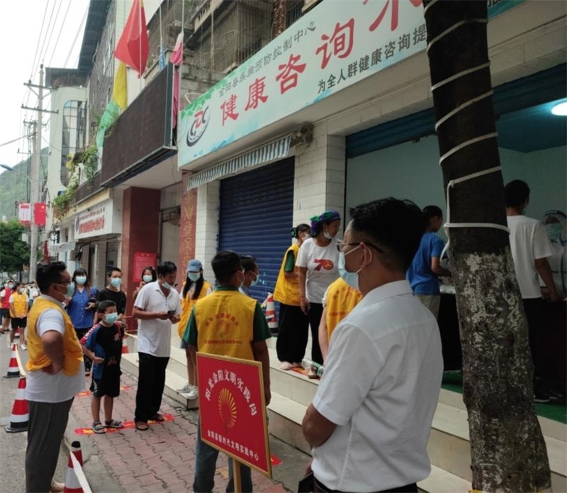 同时,该县还组建8支“党员先锋”服务队,在县城8个核酸检测点开展志愿服务活动。在服务队的协助下,现场采集工作有序高效的进行,他们既是“守门员”,严格落实测温扫码工作,现场消杀;又是“引导员”,时刻维护核酸检测现场秩序;还是“宣传员”,提醒群众在等候检测时戴好口罩保持距离。