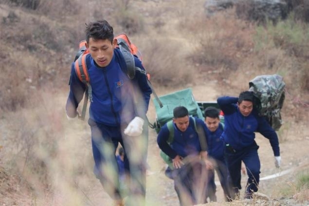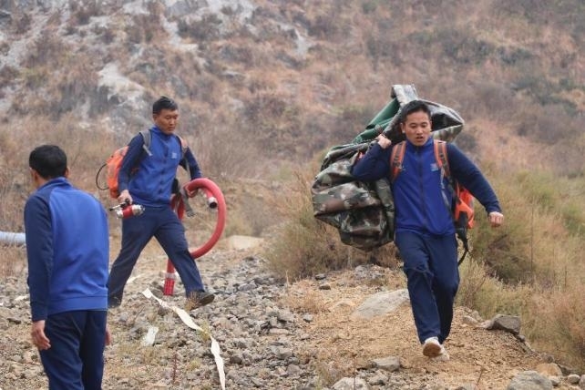 四川在线消息(文/图 吴沙尾 朱金权)2月4日,金阳县在东山社区开展山地水泵架设与撤收训练,40名专业扑火队员参训。