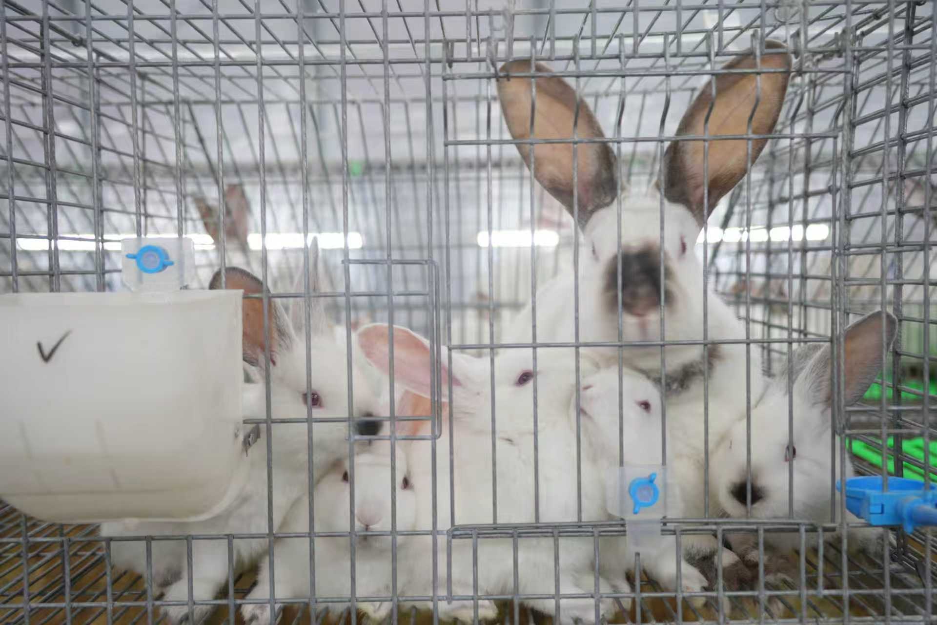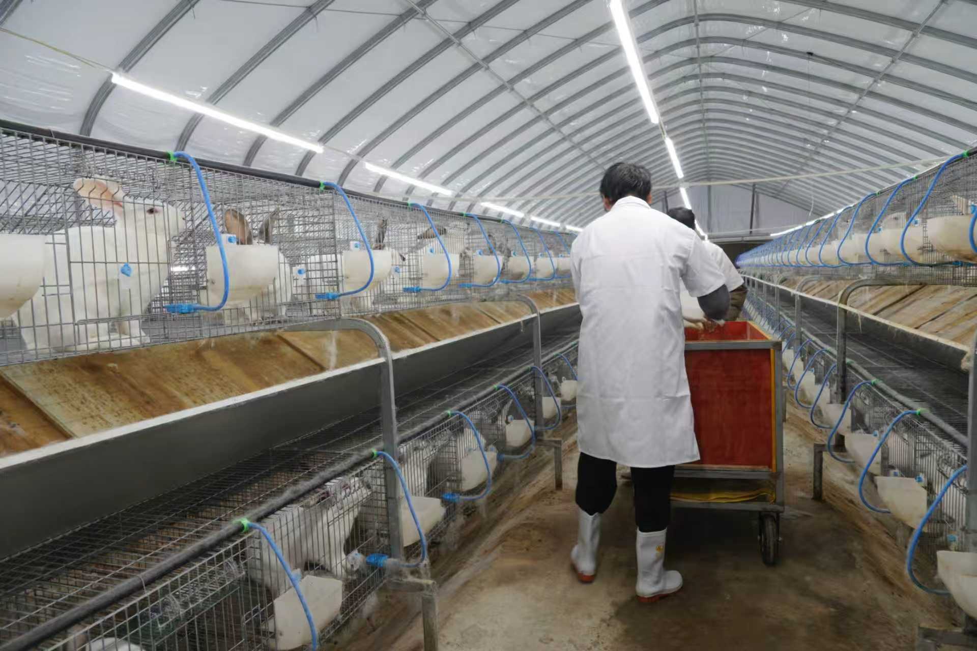 “现在养兔和以前大不一样,全是科学化、标准化管理!”饲养员周易勇一边添料换水,一边翻看兔子生长记录表,干净智能的养殖环境让传统产业焕发新生。远远望去,12座蓝顶白墙的标准化兔舍整齐排列,3000个专用兔笼内,1800只优质种兔“安居乐业”。基地实行单笼饲养模式,专人负责清理消杀,实时监测温湿度与氨气浓度,通风、恒温、智能防疫等现代化设施一应俱全。