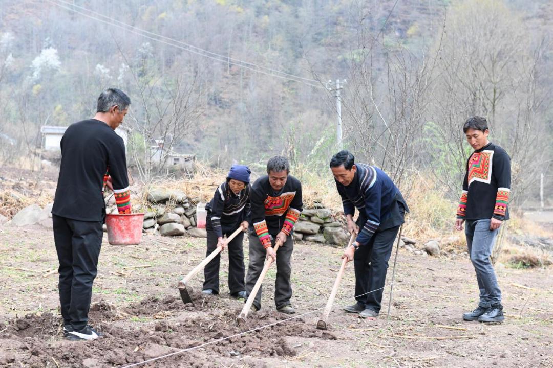 在美姑县觉洛乡帕古村的田间地头,村民们三五成组,拉线开沟、撒肥点种,身影在田埂间穿梭忙碌,为全年粮食稳产增收筑牢根基。