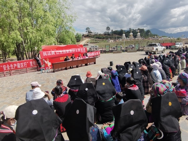 四川在线消息(文/图 仁青拉初 撒达次尔)为切实增强人民群众的法治意识和法治信仰,实现法律“八进”宣传全覆盖,5月9日,木里藏族自治县妇联联合县司法局到牦牛坪乡叶村开展“民法典 让生活更美好”主题宣讲活动。