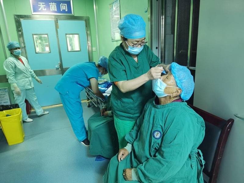 今年80岁的韩进荣身患高血压、糖尿病,本来视力恢复无望的她,在家人的陪伴下来到木里县人民医院,仅仅用了五分钟就也顺利完成了复明手术,再次重建光明,老人激动地说,“人老了还是想多看一下世界,这是又一次的幸福,这次手术效果很好。”