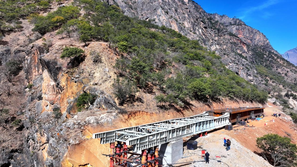雅砻江大桥合龙的背后,是建设者们攻坚克难的不懈努力,而在项目另一处施工现场,同样涌动着大干快上的热潮。与雅砻江大桥同步推进的青岗坪大桥,跨度70米,桥宽8米,梁高3.4米,总吨位400吨,施工工期约3个月,最重钢梁组件约25吨,受地理条件限制,大桥建设材料运输与现场施工面临多重考验。