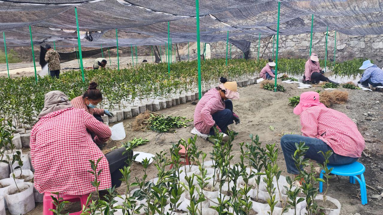基地管理员宋立洪介绍,经长期实地调研与科学论证,确认此地适合金桔生长。基地从广西引进5万余株脆蜜金桔白苗、裸根苗,运用科学培育技术,培育根系发达、植株健壮、抗病性强的优质种苗。这些种苗不仅能满足本地种植需求,还将供应给卡拉乡、倮波乡等周边乡镇,助力当地发展金桔种植产业。