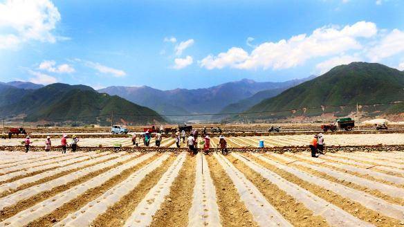 四川在线消息(文/图 马萍马嘿依姑)4月26日,在冕宁县哈哈河坝五万亩集中连片烟田,烟农们忙着将烟苗移栽到田间,整齐笔直的垄沟、白色的预盖膜在阳光下闪亮耀眼,烟农们手握烟叶移栽器,一按一捏一提就栽好了。