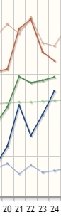 上面这张图是温江站2020年1月20日至24日气温与历史同期比较的情况(深色线为实况,浅色线为历史同期值)。看看,23日、24日,成都的日最高气温虽然回落,日最低气温却快速上升;24日当天,日最高气温、日最低气温和日平均气温全都高于历史同期值——这样的气温实在不算低。