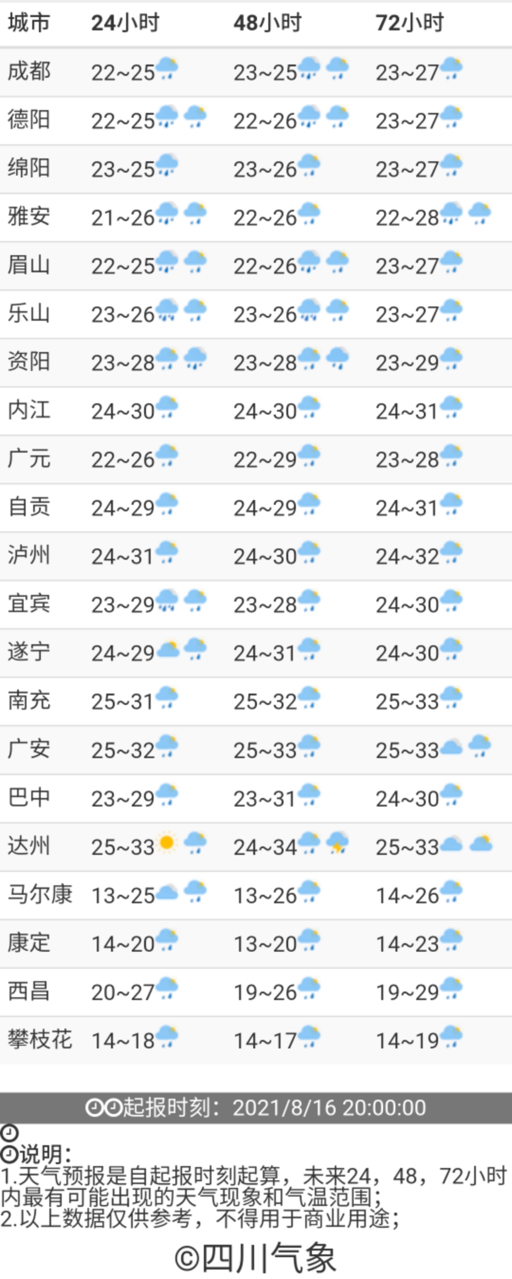 从四川省气象台最近三天的天气预报看,这一轮强降雨主要集中在16日晚上到18日白天。
