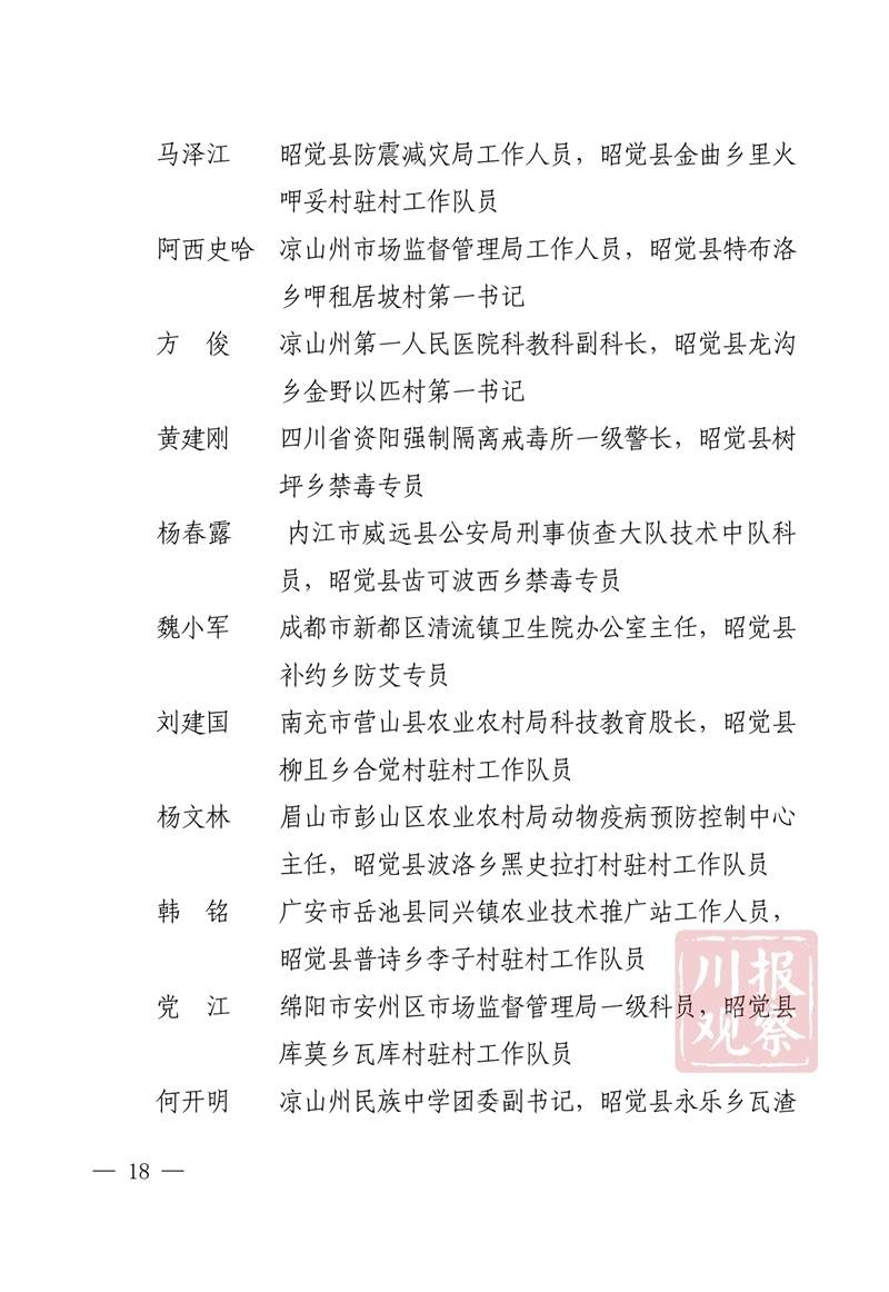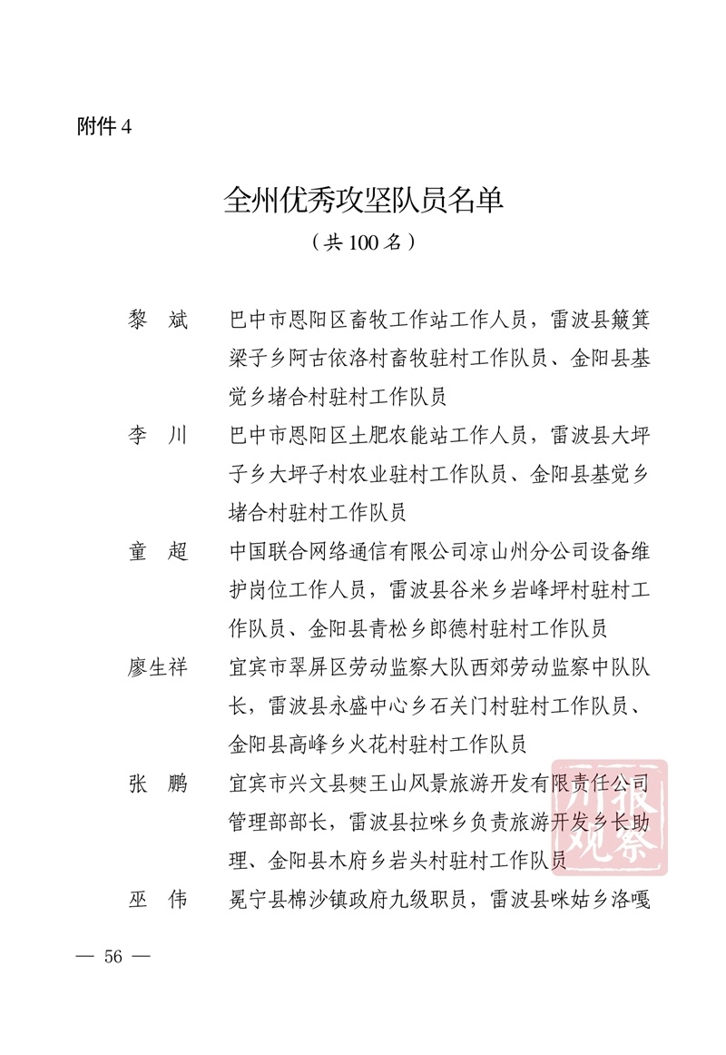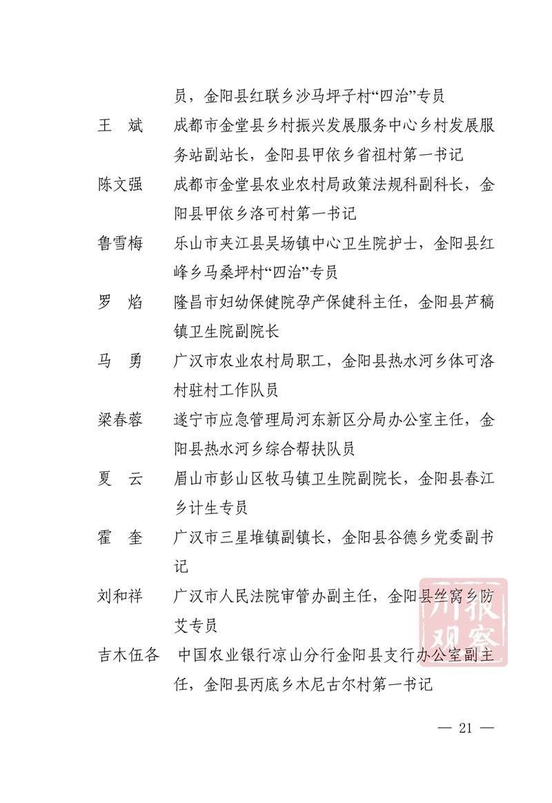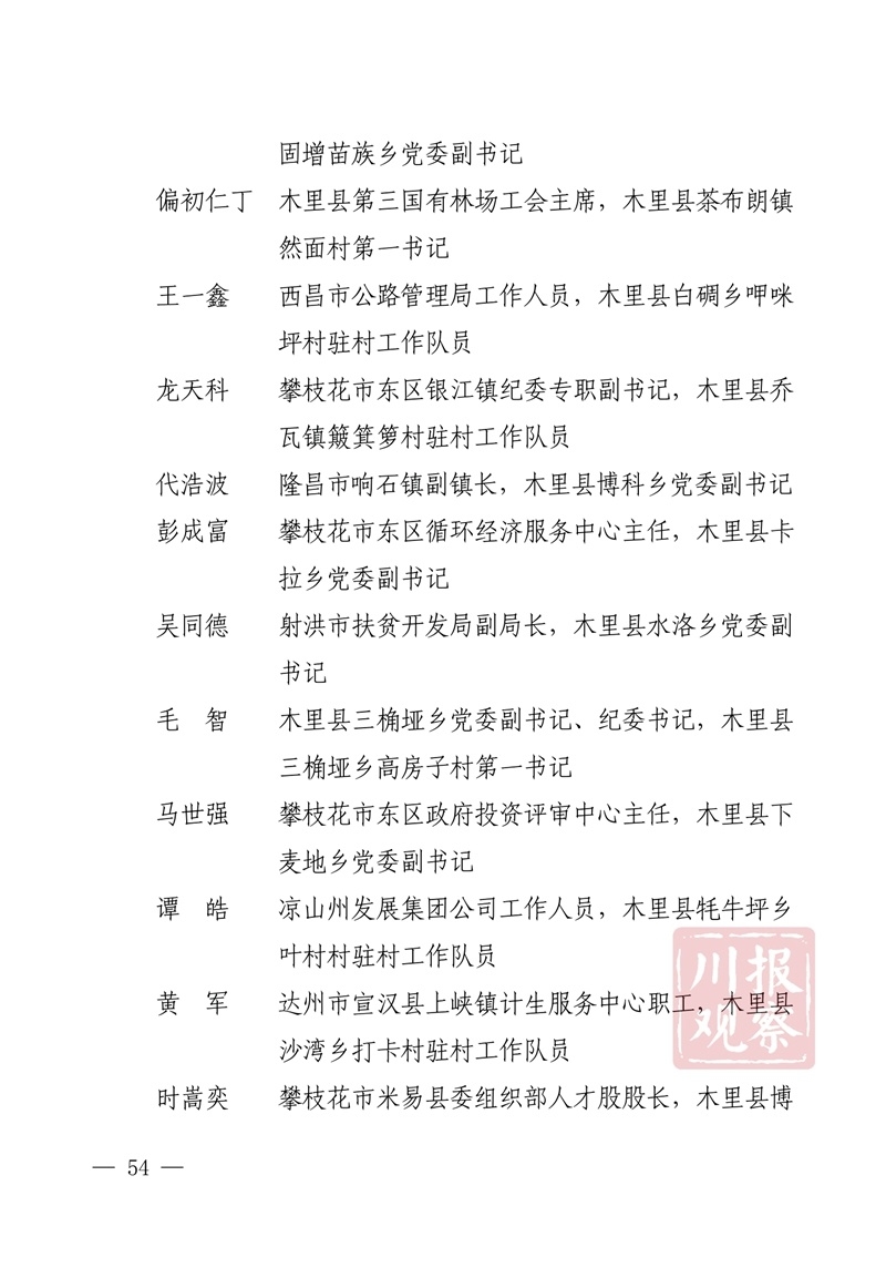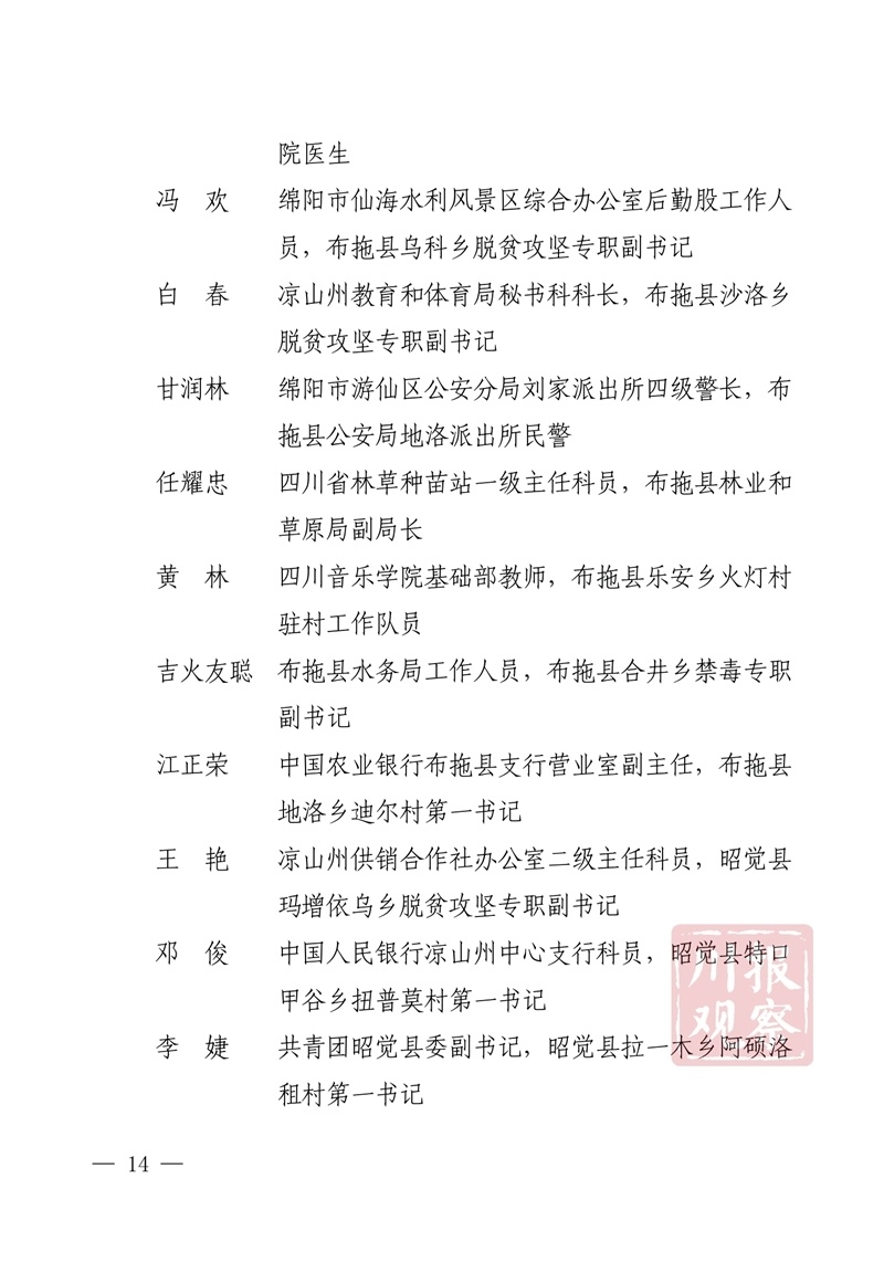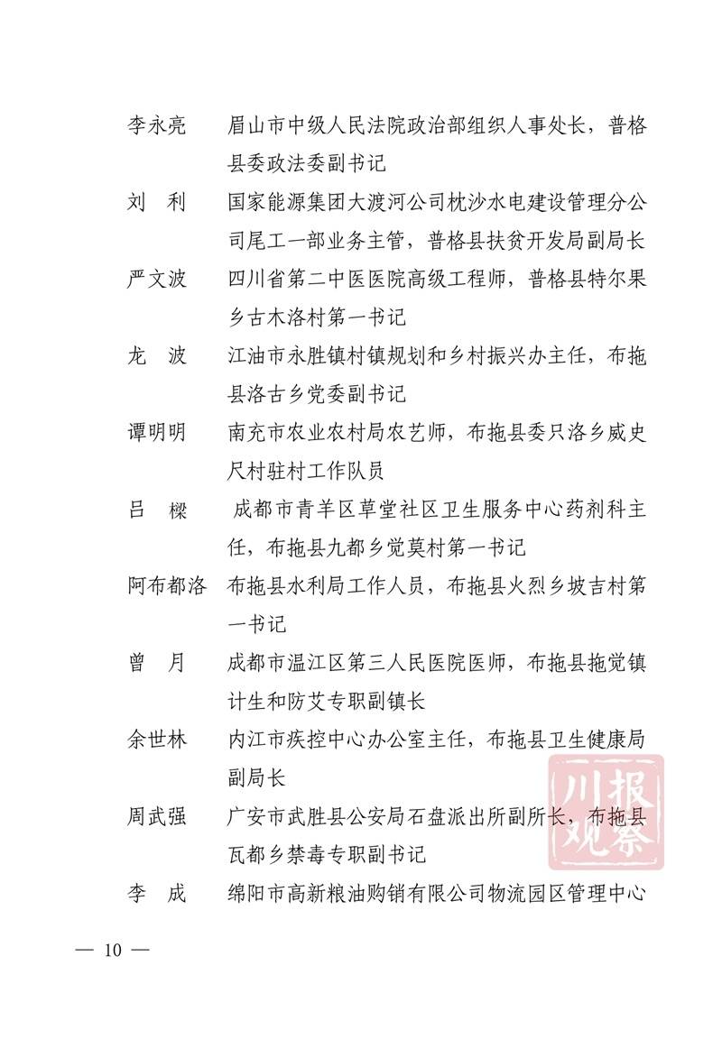 7月28日上午,凉山州脱贫攻坚帮扶干部人才表扬大会举行,凉山州委、州政府决定,对普格县荞窝镇云盘山村等10个“十佳综合帮扶工作队”,刘维等10名”十佳帮扶队员”,王坤等500名“优秀帮扶队员”,黎斌等100名“优秀攻坚队员”,王祖兴等50名“优秀驻村工作队员”予以通报表扬。