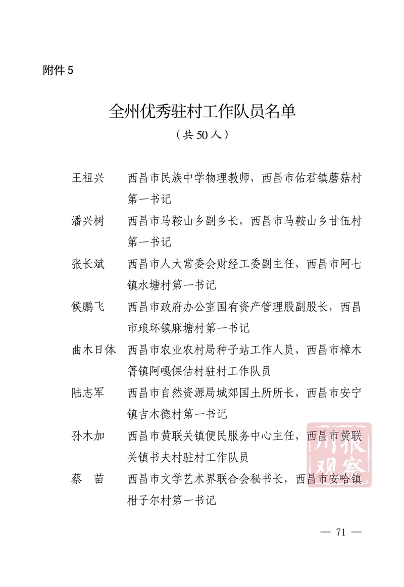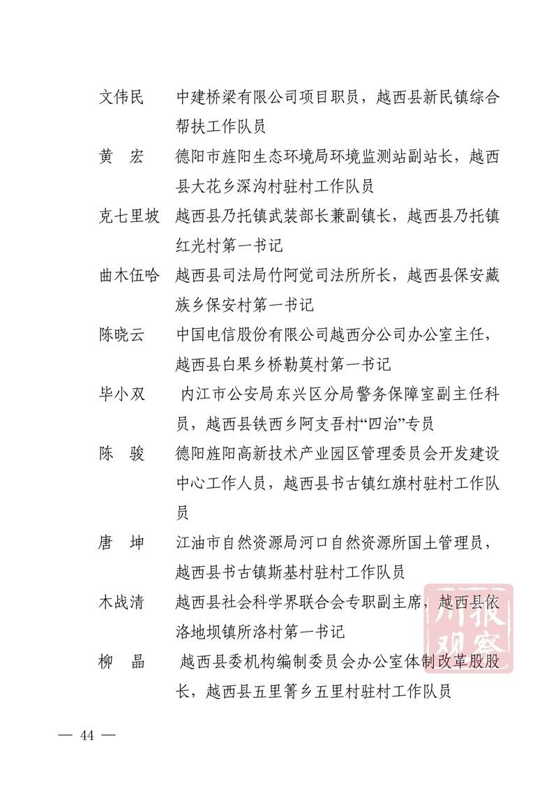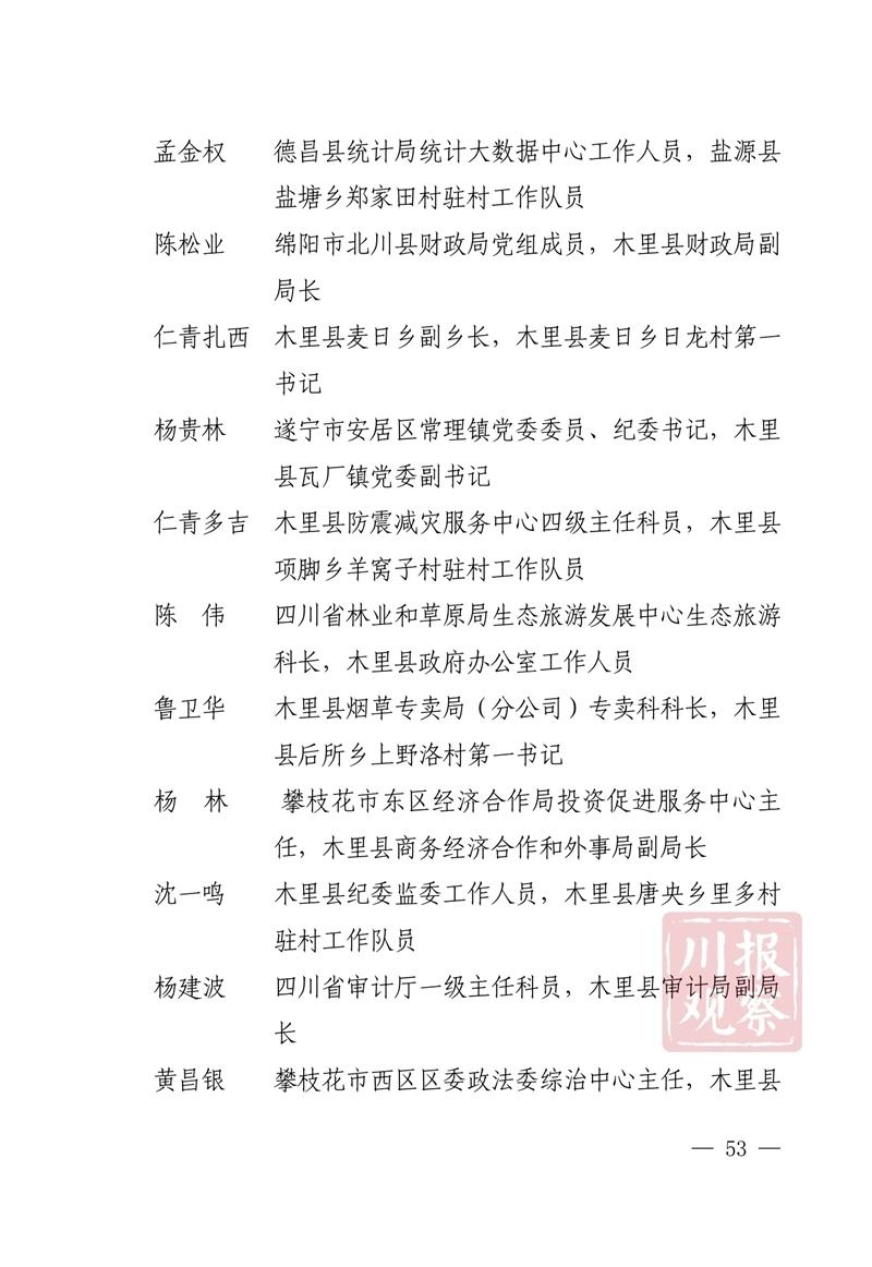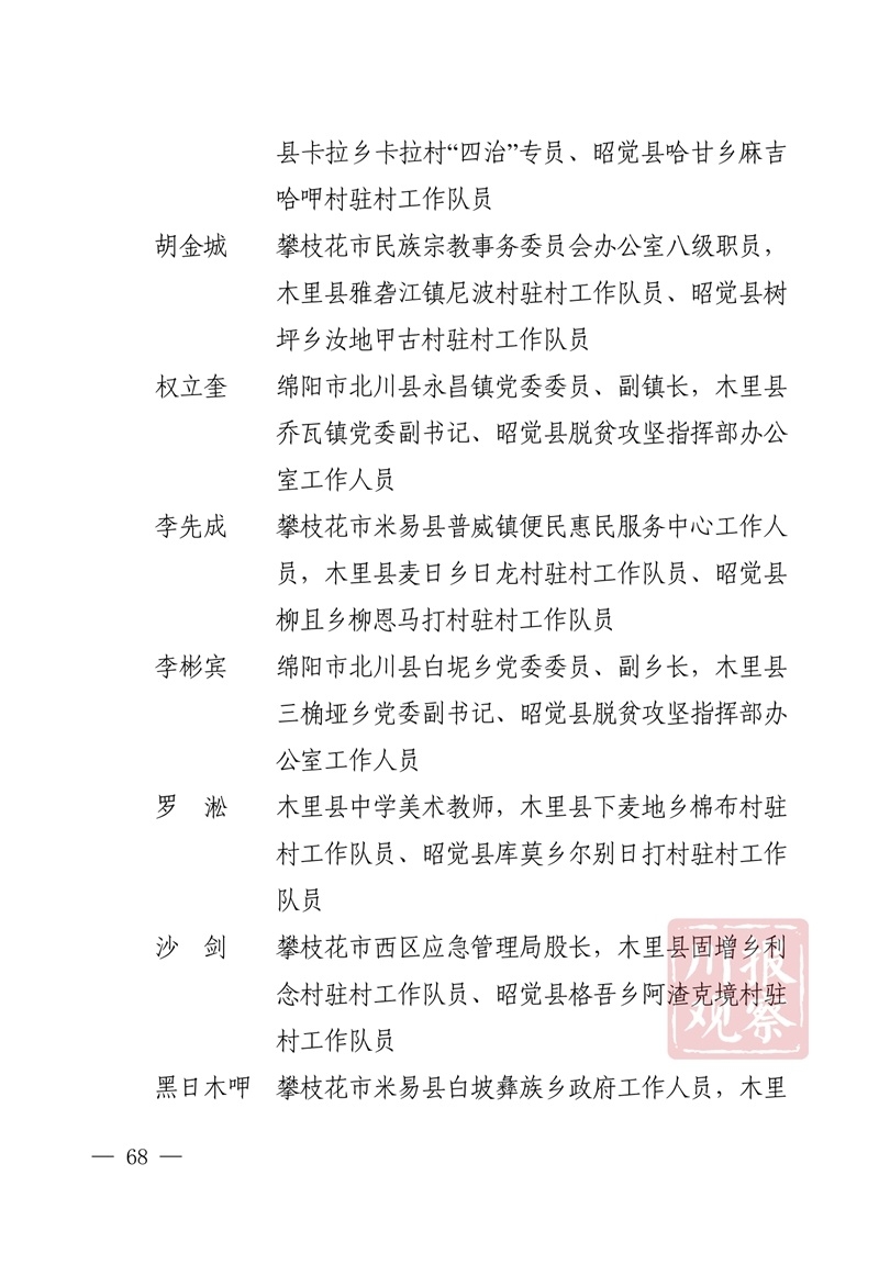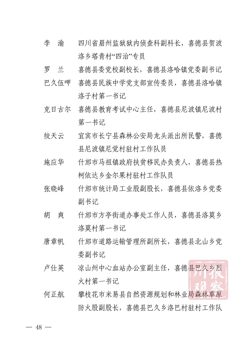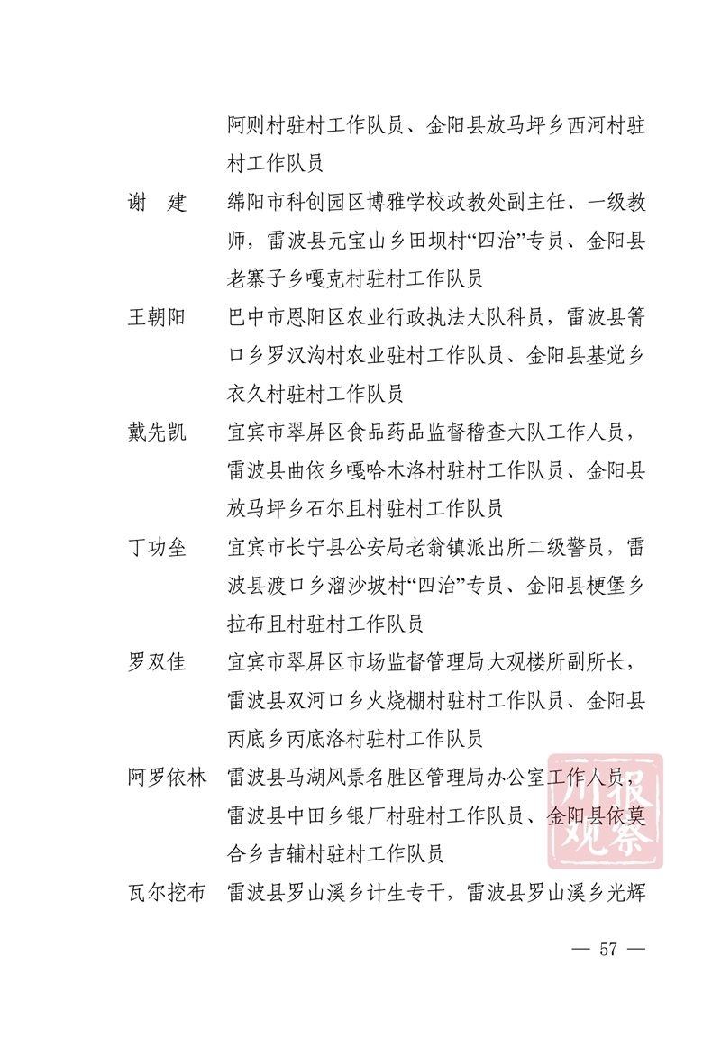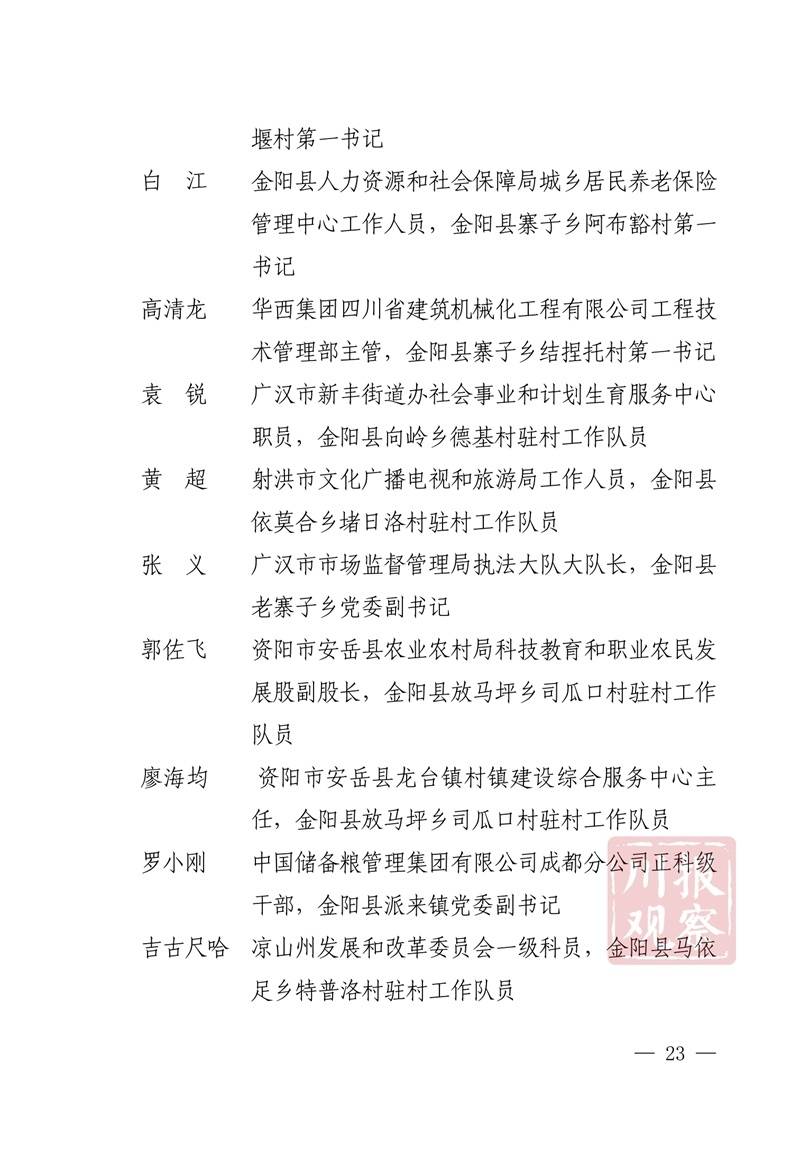 7月28日上午,凉山州脱贫攻坚帮扶干部人才表扬大会举行,凉山州委、州政府决定,对普格县荞窝镇云盘山村等10个“十佳综合帮扶工作队”,刘维等10名”十佳帮扶队员”,王坤等500名“优秀帮扶队员”,黎斌等100名“优秀攻坚队员”,王祖兴等50名“优秀驻村工作队员”予以通报表扬。