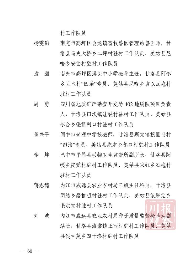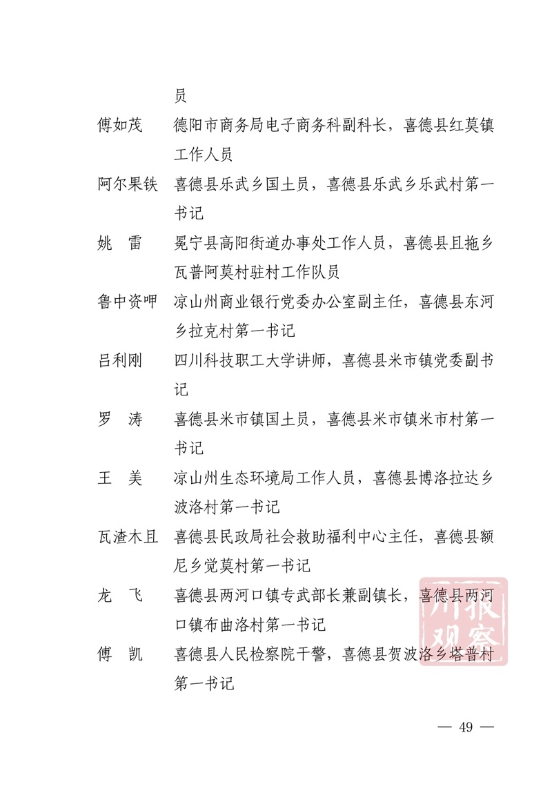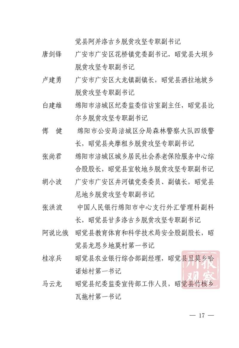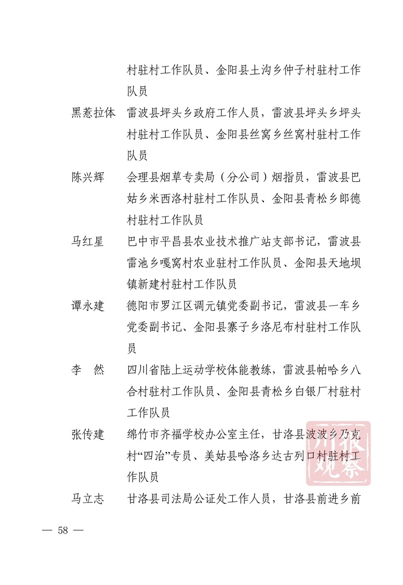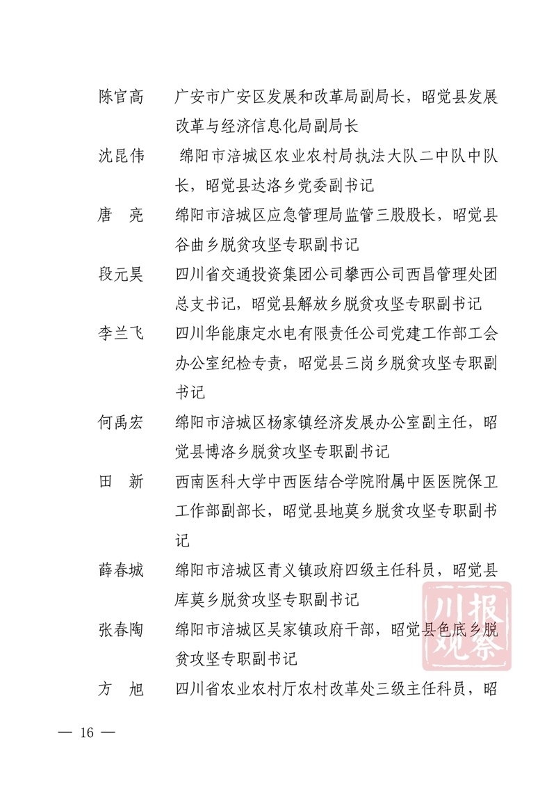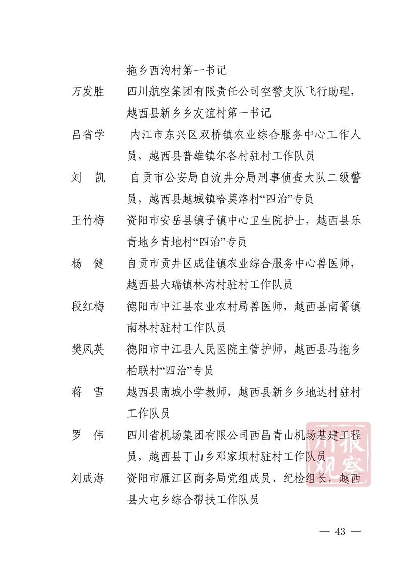 7月28日上午,凉山州脱贫攻坚帮扶干部人才表扬大会举行,凉山州委、州政府决定,对普格县荞窝镇云盘山村等10个“十佳综合帮扶工作队”,刘维等10名”十佳帮扶队员”,王坤等500名“优秀帮扶队员”,黎斌等100名“优秀攻坚队员”,王祖兴等50名“优秀驻村工作队员”予以通报表扬。