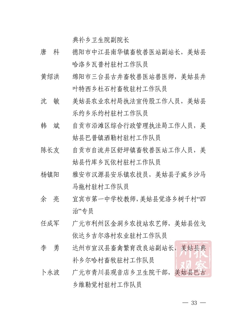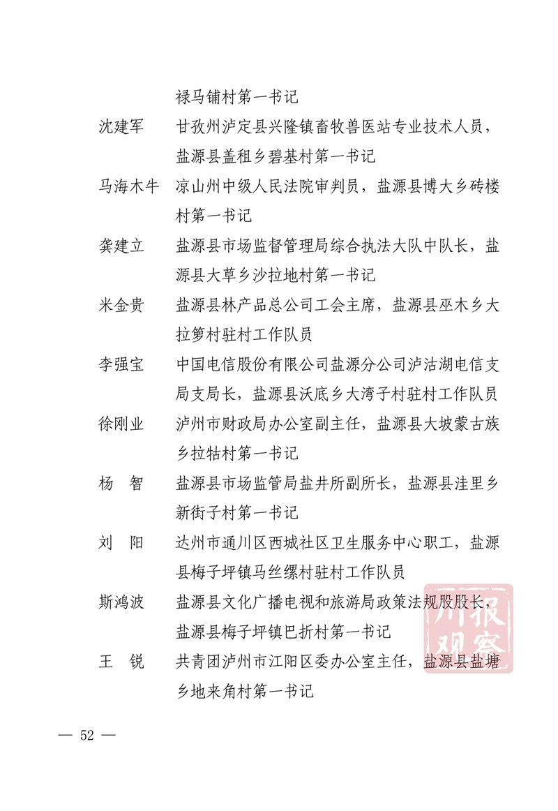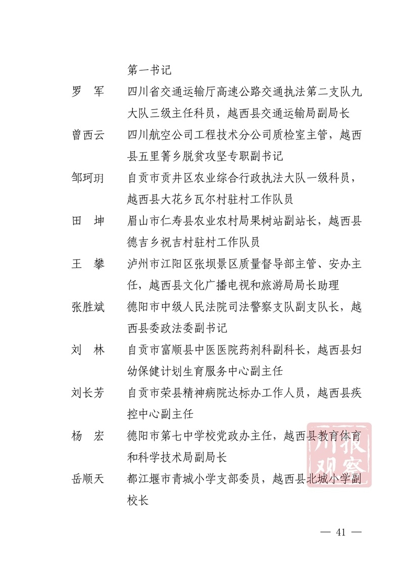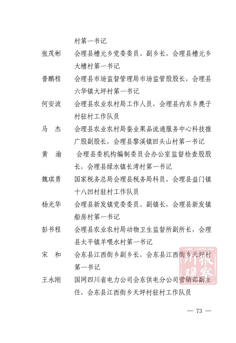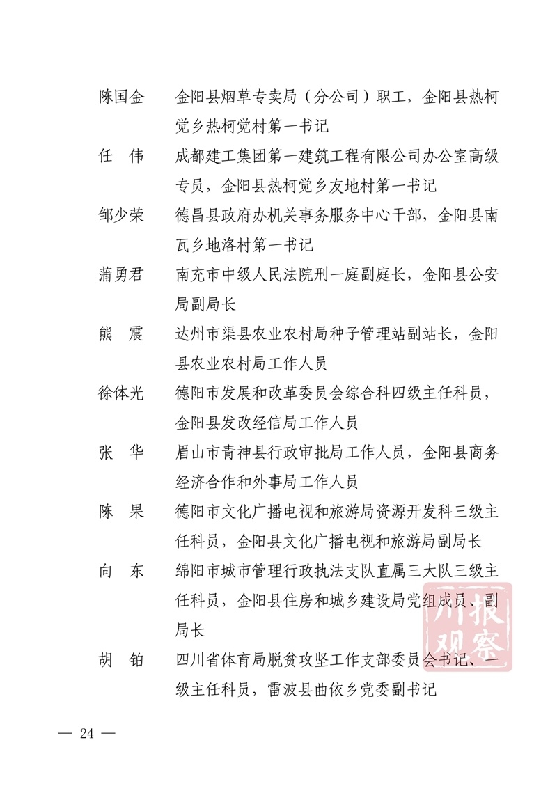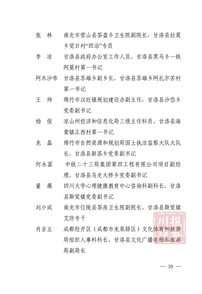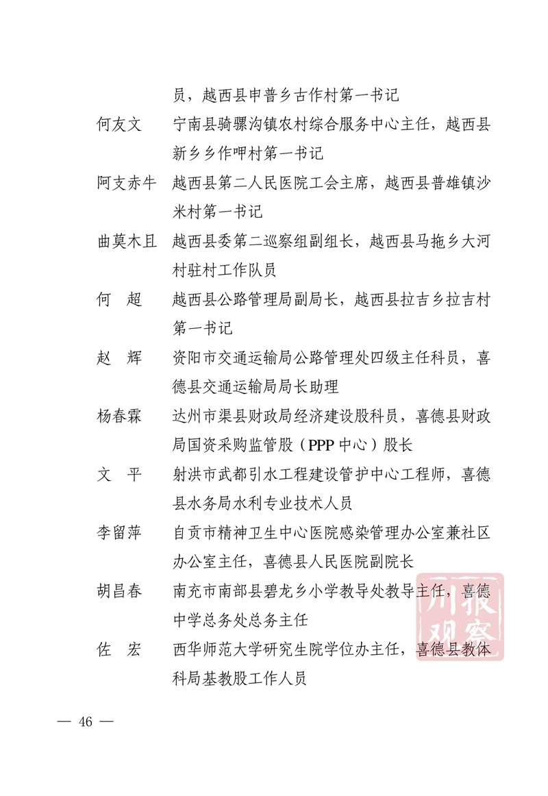 7月28日上午,凉山州脱贫攻坚帮扶干部人才表扬大会举行,凉山州委、州政府决定,对普格县荞窝镇云盘山村等10个“十佳综合帮扶工作队”,刘维等10名”十佳帮扶队员”,王坤等500名“优秀帮扶队员”,黎斌等100名“优秀攻坚队员”,王祖兴等50名“优秀驻村工作队员”予以通报表扬。