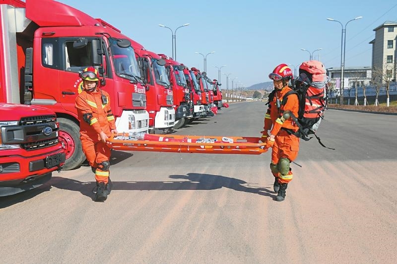 2月24日,凉山州消防救援支队组织全州消防救援队伍开展地震灾害应急救援拉动演练。图为救援队员正在进行救援演练。凉山州消防救援支队供图