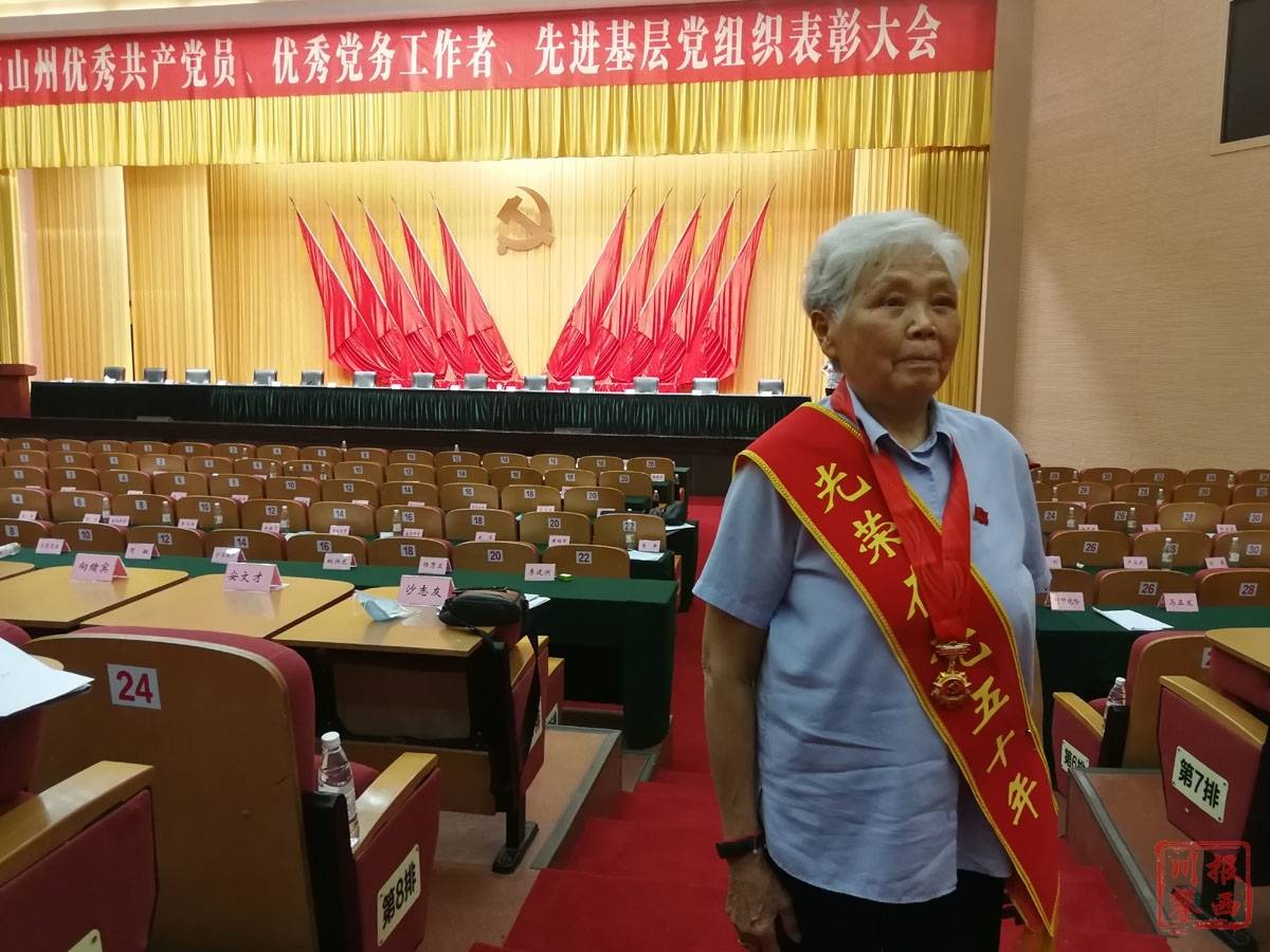 会议还向党龄在50年以上的老党员代表颁发“光荣在党50年”纪念章。