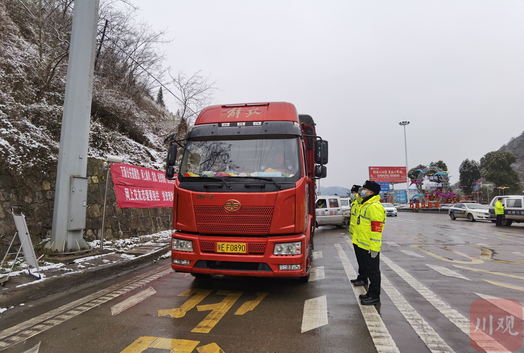同时,交通执法与高速交警、路公司人员整合编队,通过布撒防滑沙、融雪剂、警车带行等方式引导滞留车辆通行泥巴山隧道路段。