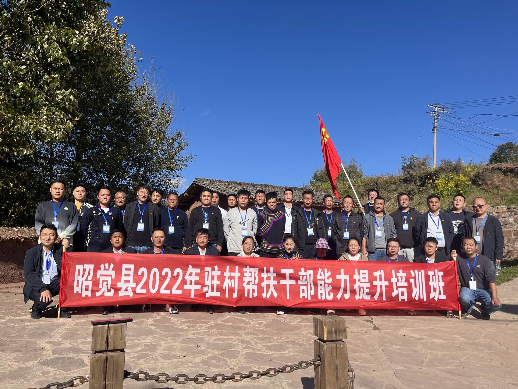 紧跟在罗英身后的一队人高举鲜艳的党旗,这是来自昭觉县20个乡镇的40名一线驻村帮扶干部,他们是参加昭觉县驻村帮扶干部能力提升培训班的首批学员。