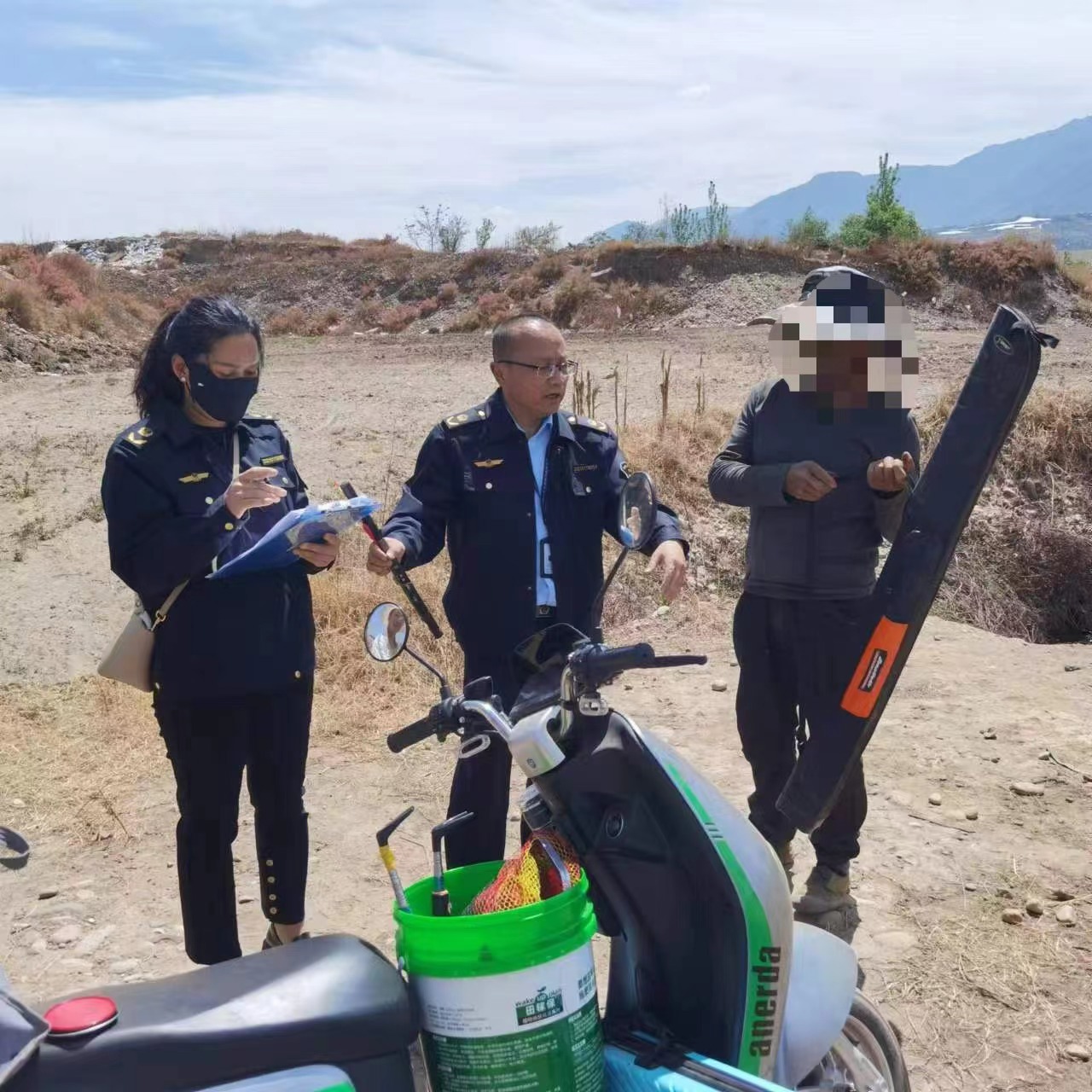 西昌市农业农村局渔政工作人员对违规垂钓人员进行劝阻。西昌市农业农村局供图