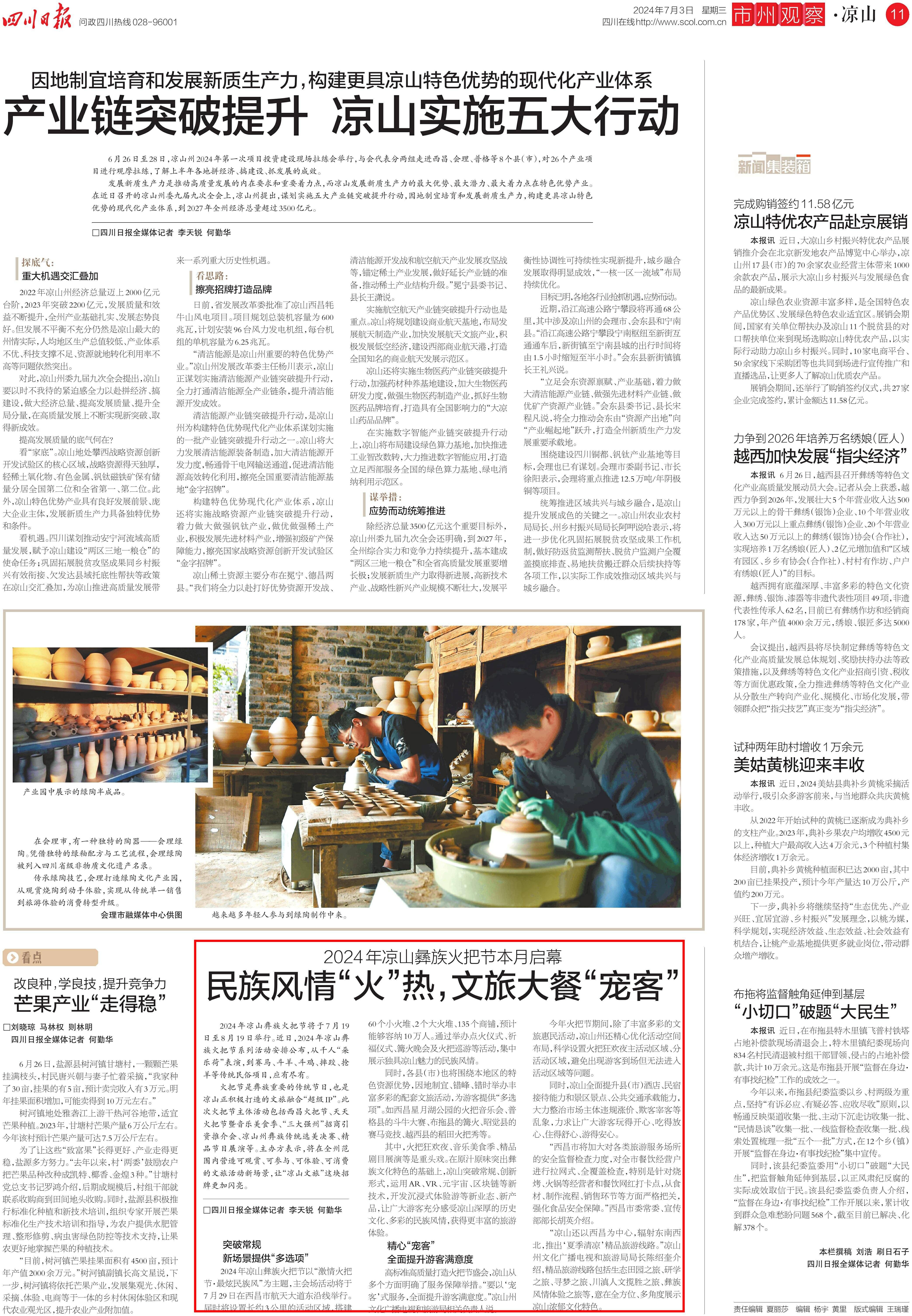 7月3日,四川日报刊发文章《2024年凉山彝族火把节本月启幕》,聚焦2024年凉山彝族火把节系列活动安排公布,从千人“朵乐荷”表演,到赛马、斗羊、斗鸡、摔跤、抢羊等传统民俗项目,应有尽有。