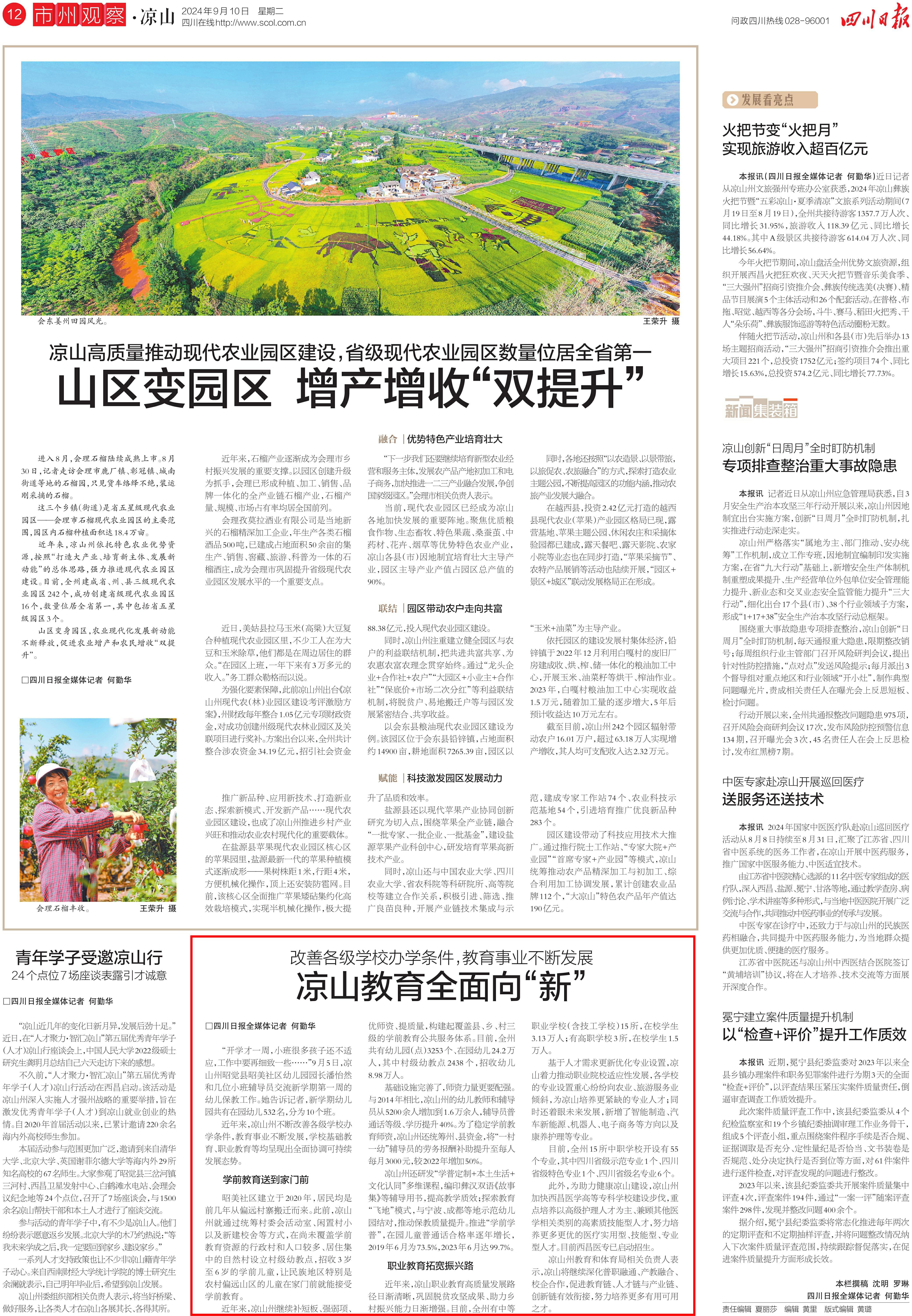 9月10日,四川日报刊发文章《凉山教育全面向“新”》,聚焦凉山不断改善各级学校办学条件,教育事业不断发展。