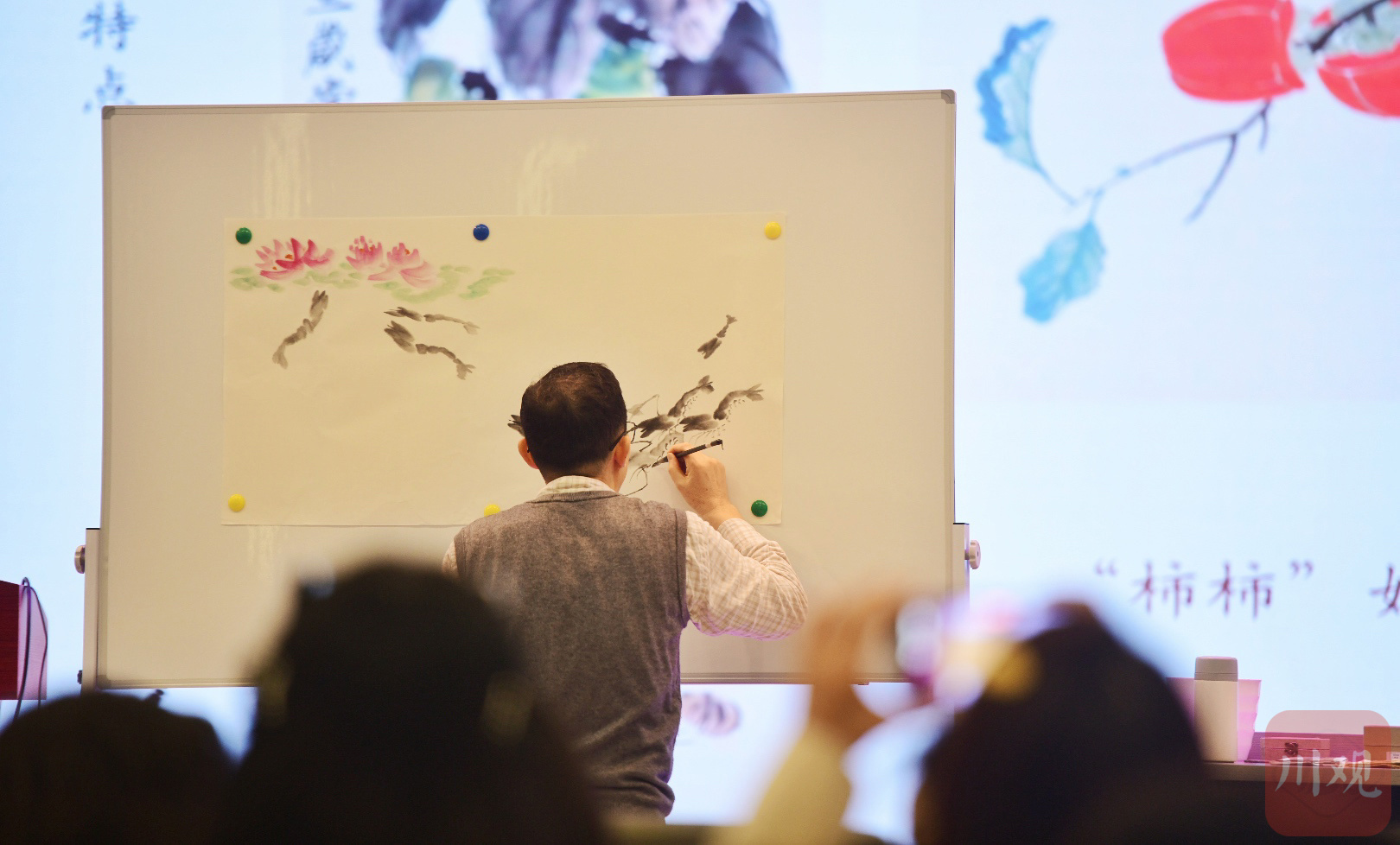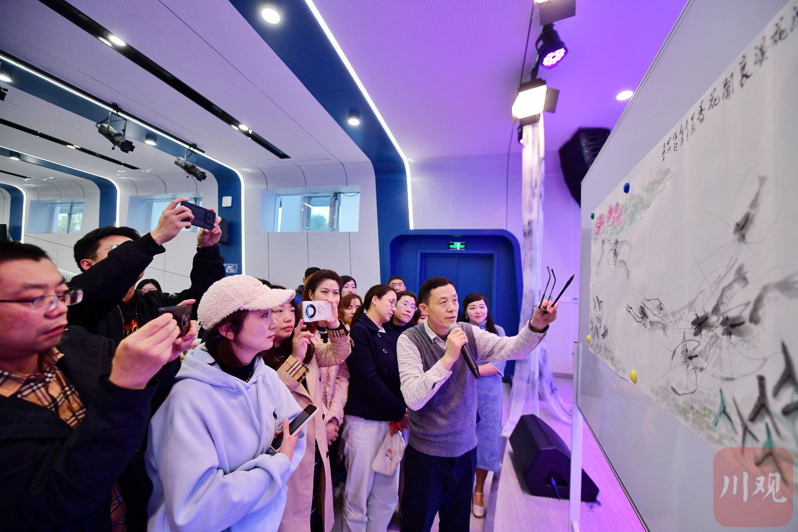 毛笔轻触宣纸,灵动走出奇妙线条,寥寥数笔,几只墨虾跃然纸上,活灵活现。11月14日下午,中国画齐派大写意书画鉴赏活动走进四川大学校园,四川大学产业集团、图书馆、建环学院、博物馆、电气信息学院等单位的部分教职员工代表参加了活动。