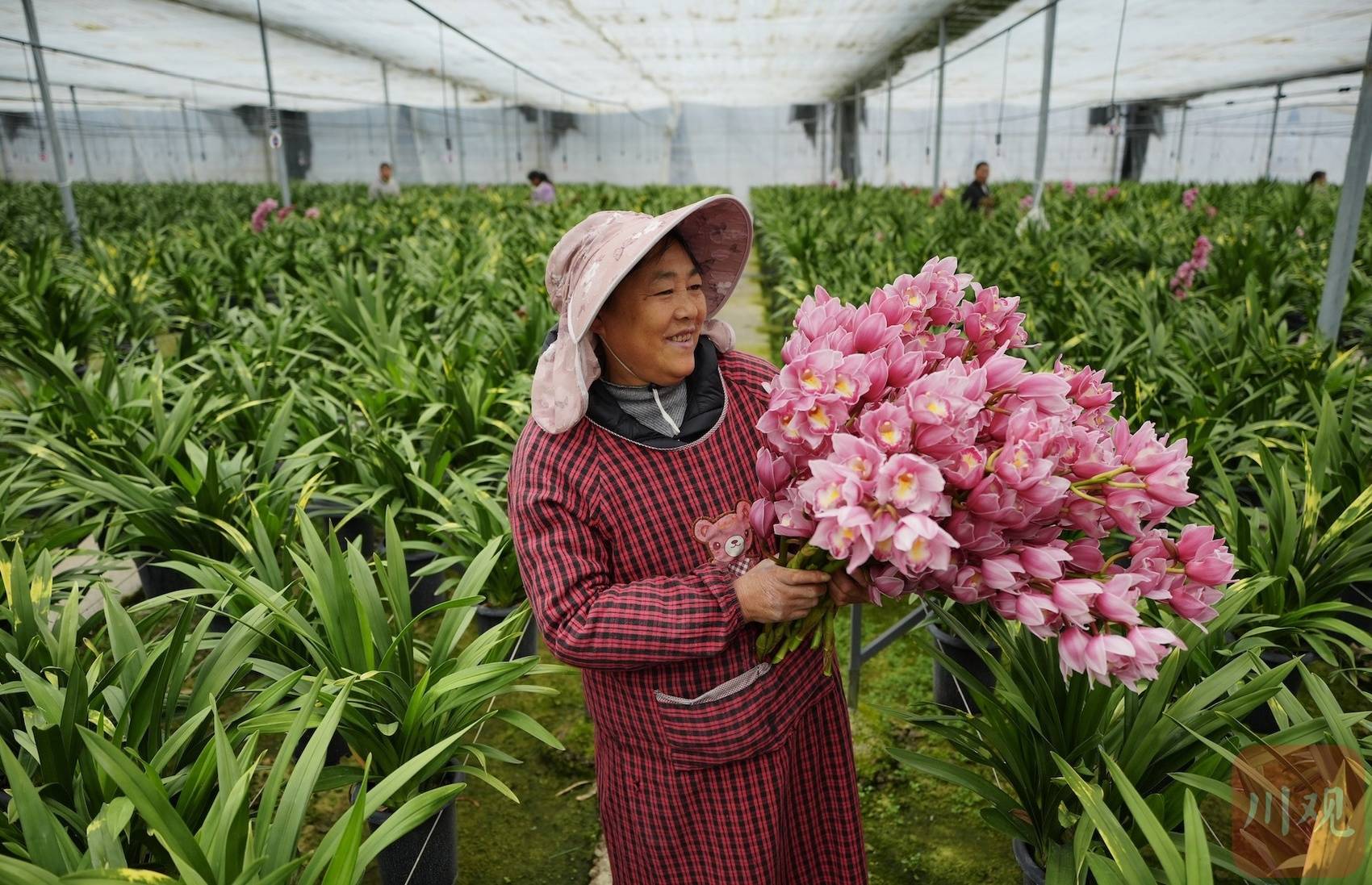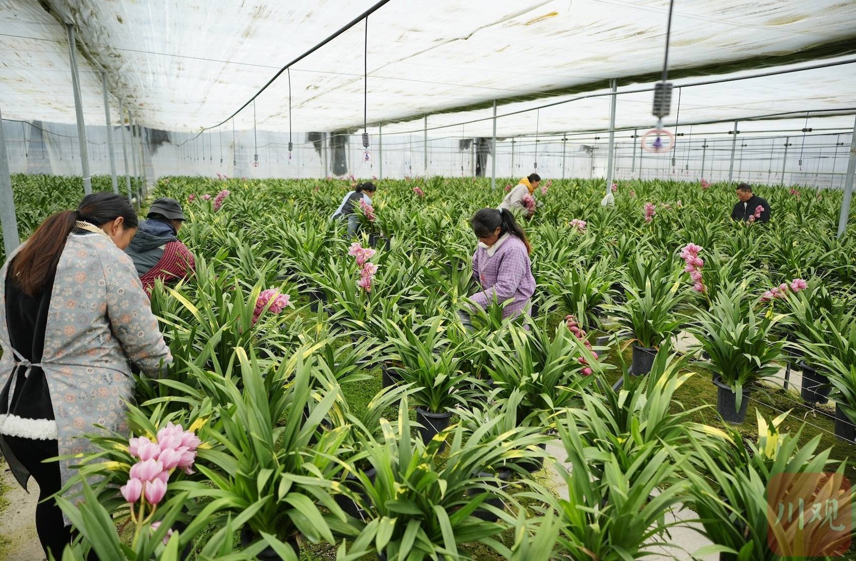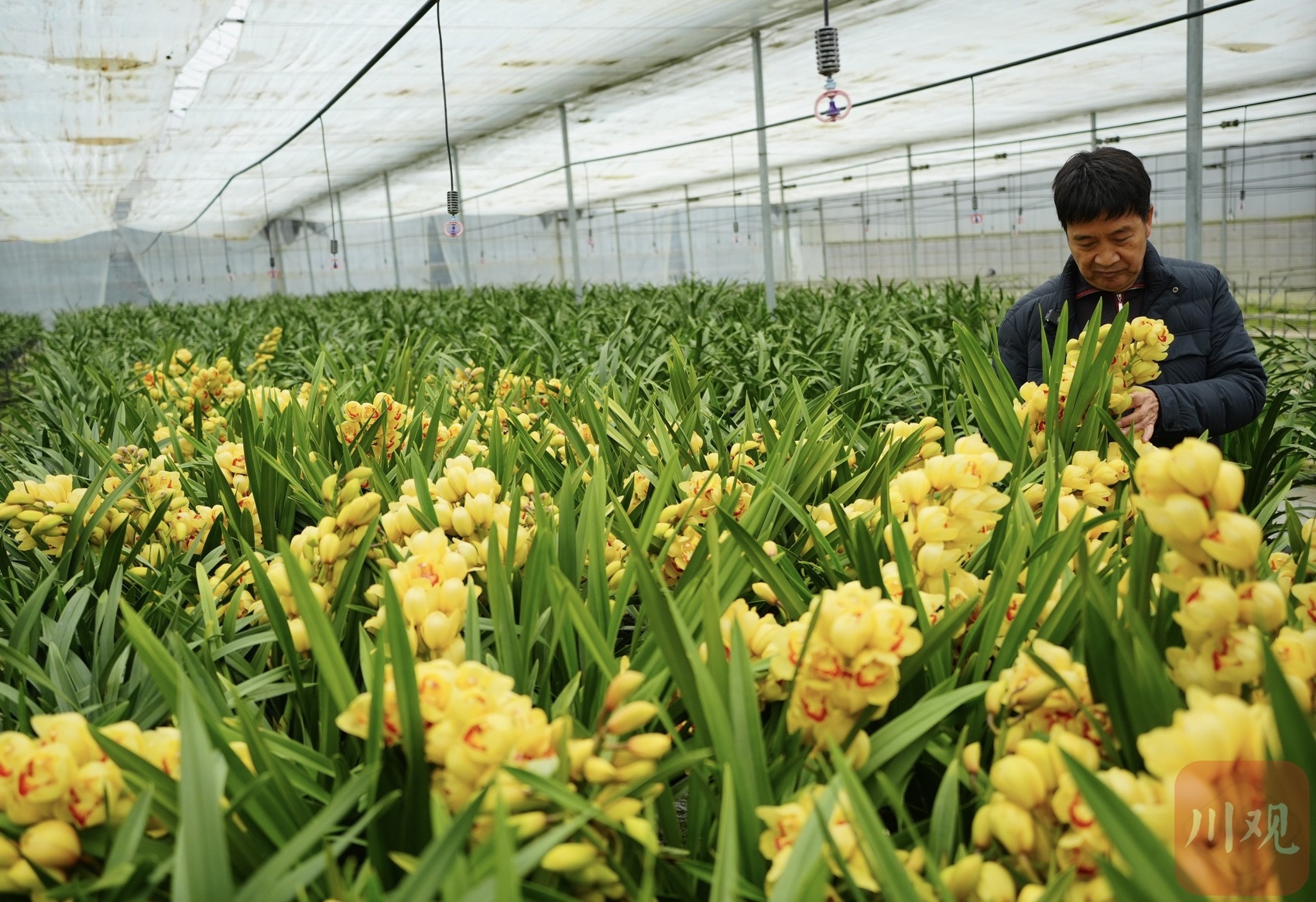 “来得不巧,我们当季的大花蕙兰基本卖完了,你们能看到的品种不多了。”2月7日,2025年“万千气象看四川”一季度主题采访活动报道组来到凉山州西昌市礼州镇采访时,西昌鲜绿种业有限公司(以下简称“鲜绿种业公司”)总经理谢平脸上堆起笑容:“去年9月到今年春节,公司仅出口就有5万盆大花蕙兰。”