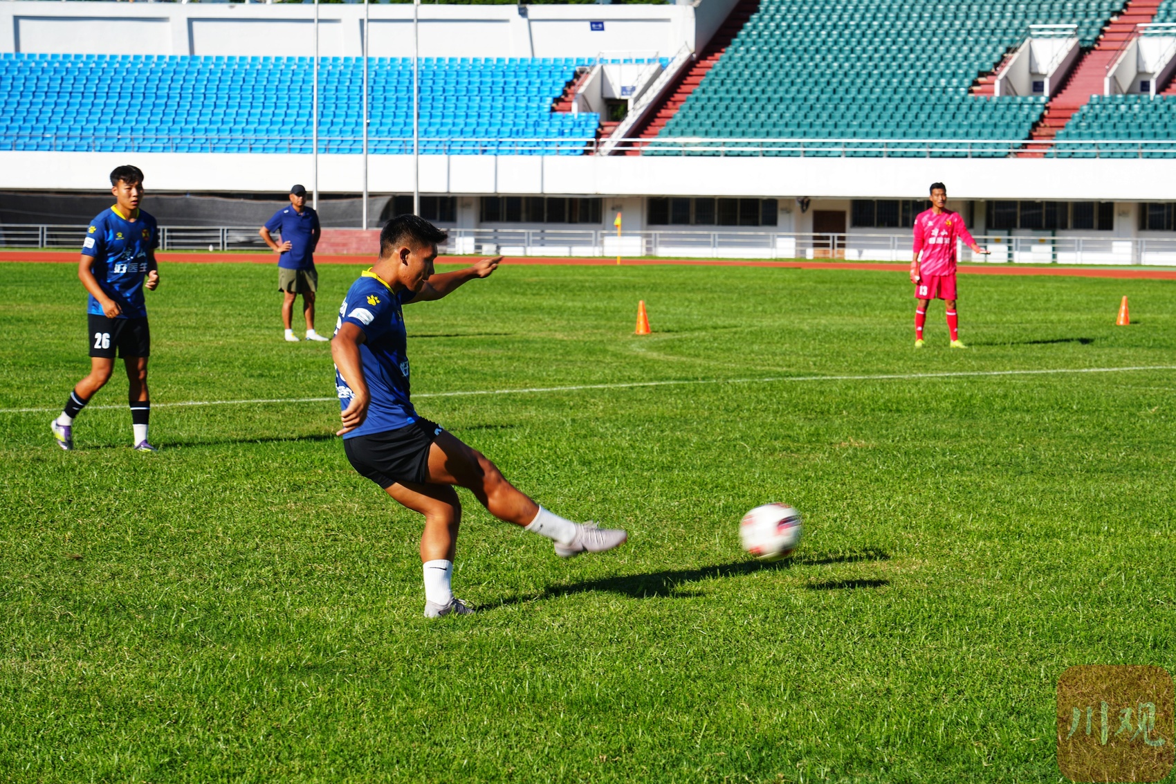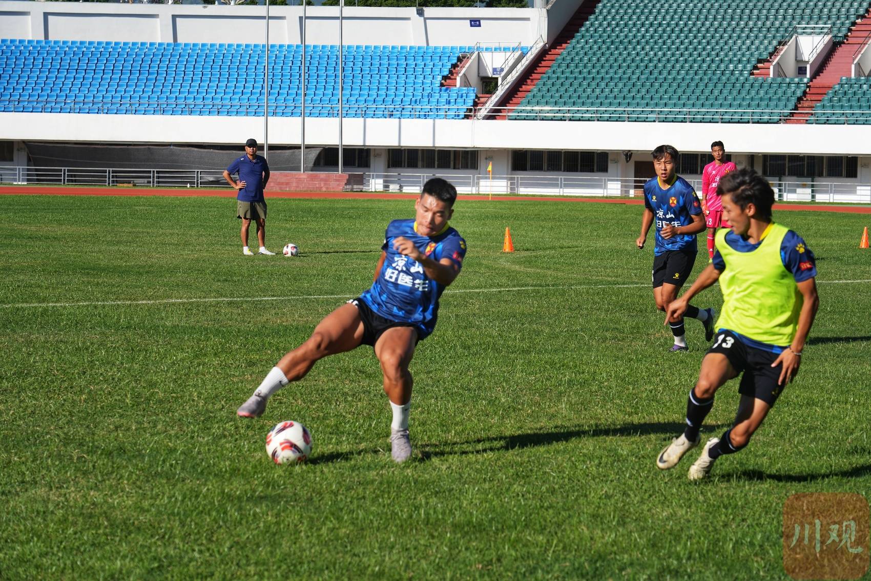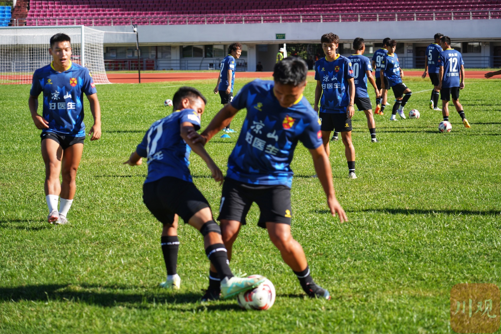9月27日,川超凉山队将客场对阵攀枝花队,这是凉山队参加川超的首场比赛。25日,记者来到凉山民族体育场,烈日下,教练和队员们正在加紧训练,挥汗如雨。