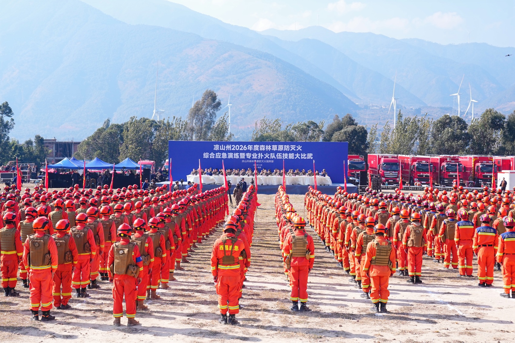为全面检验和提升全州森林草原火灾应对处置能力,12月18日,凉山州在德昌县麻栗镇举行2026年度森林草原防灭火综合应急演练。