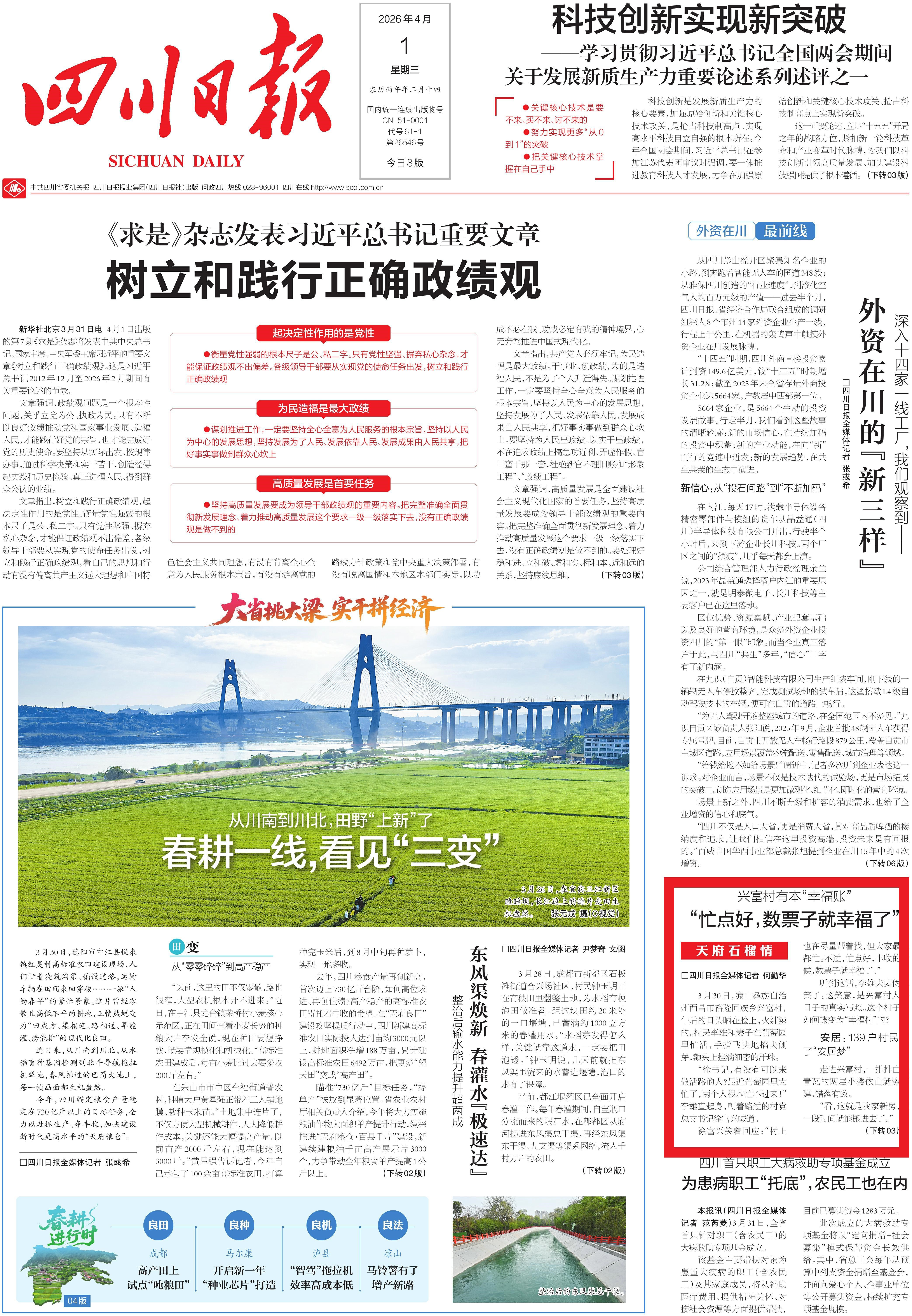 4月1日,四川日报头版刊发文章《兴富村有本“幸福账”》,聚焦西昌市以铸牢中华民族共同体意识为主线,大力实施工业倍增、农业提质、文旅增效等八大行动,探索具有民族地区特色的现代化建设路径。