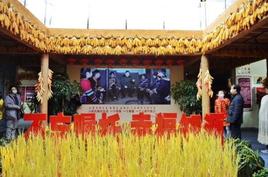 石磨、刨头、吊锅……一件件老物件让人回忆起艰难是岁月,俯身、握手、鼓掌……一幅幅图片记录着两年前那个珍贵的日子,蜂蜜、羊肚菌、苦荞茶……一件件农特产品预示着未来美好的日子。