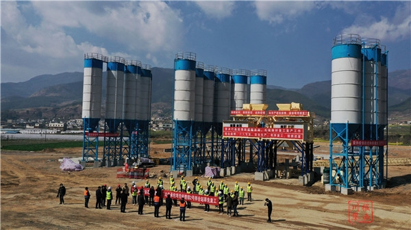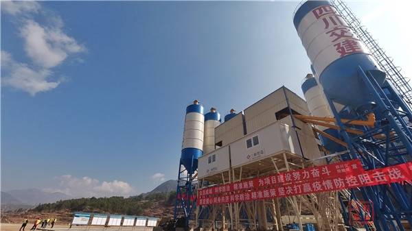来到中建八局施工段落内的2#拌和站复工点,项目经理余崇军介绍说,2#拌和站占地约32.5亩,采用3HZS120混凝土生产线,混凝土供应总方量约50万方。“2#拌和站是中建八局施工段落内第一条混凝土生产线,为场站建设、便道、主体工程施工提供混凝土保障。”