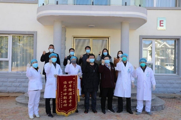 袁先生夫妇向盐源县人民医院赠送锦旗上书“妙手除疫显奇术,临危济世彰精神”,感谢县人民医院的全力救治和细心照料。