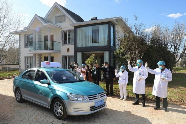2月29日,经核酸检测正常,袁先生夫妇解除居家隔离观察,告别盐源共同战“疫”的医护人员,乘车前往西昌青山机场,踏上返回武汉的路程。