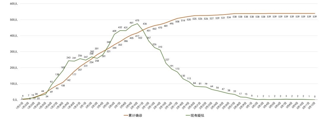 截至3月13日0时,四川省累计报告新型冠状病毒肺炎确诊病例539例,涉及21个市(州)。
