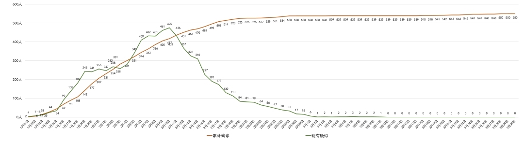 截至3月31日0时,四川省累计报告新型冠状病毒肺炎确诊病例550例(其中11例为境外输入),已治愈出院536例,死亡3例,目前在院隔离治疗11例,699人正在接受医学观察。