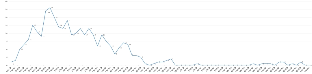 四川省新冠肺炎每日新增确诊病例变化曲线图