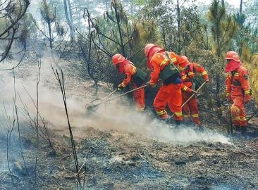 这时,李从华和队友们刚从泸山退下来回到德昌。3个半小时后,也就是4月1日凌晨3点过,风势更大,火情再次告急,山火烧出了一条“火龙”,30人再次上山。在北线的一处寺庙周围,李从华们用锄头、刀子整出约2米的隔离带,经过十几个小时的奋战后,明火终于被扑灭,民兵接力处理余火,李从华和他的队友们瘫坐在车上下了山。