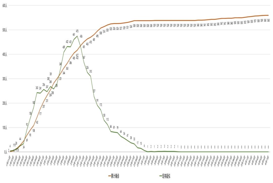 截至4月8日0时,四川省累计报告新型冠状病毒肺炎确诊病例560例(其中21例为境外输入),已治愈出院541例,死亡3例,目前在院隔离治疗16例,364人正在接受医学观察。