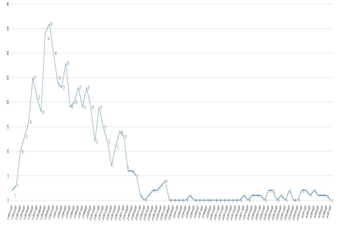 四川省新冠肺炎每日新增确诊病例变化曲线图