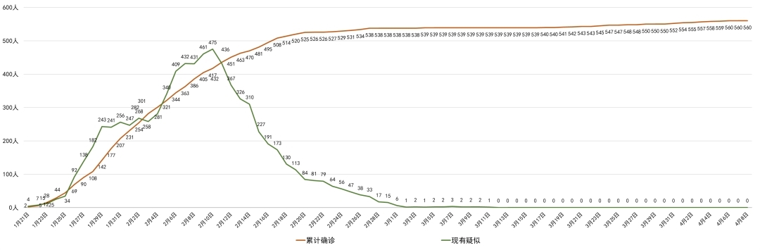 截至4月9日0时,四川省累计报告新型冠状病毒肺炎确诊病例560例(其中21例为境外输入),已治愈出院541例,死亡3例,目前在院隔离治疗16例,316人正在接受医学观察。