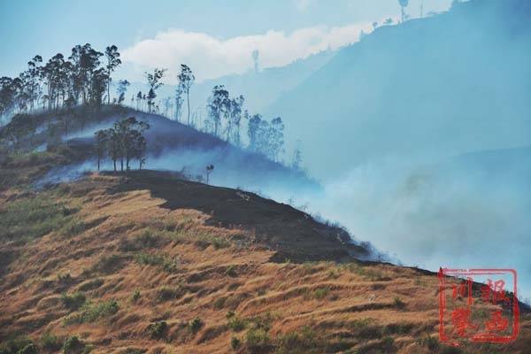 临近火场的山脚,可清楚看到明火。一位村民告诉记者,山火发生的地方是樟木箐镇李家沟村一组,小地名叫长梁子。这座山头的背后是西昌市琅环镇。