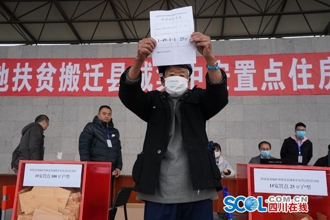 上午10时许,阿并洛古乡洛五阿莫村特殊困难户、77岁的色七古博,成为第一个拿到房号的村民。身着披毡的他,抽到的是1号安置点1-49-1-1,25平方米户型。他土坯房住了三四十年,经常漏雨。
