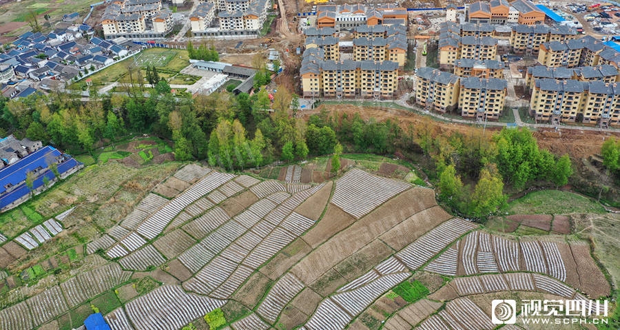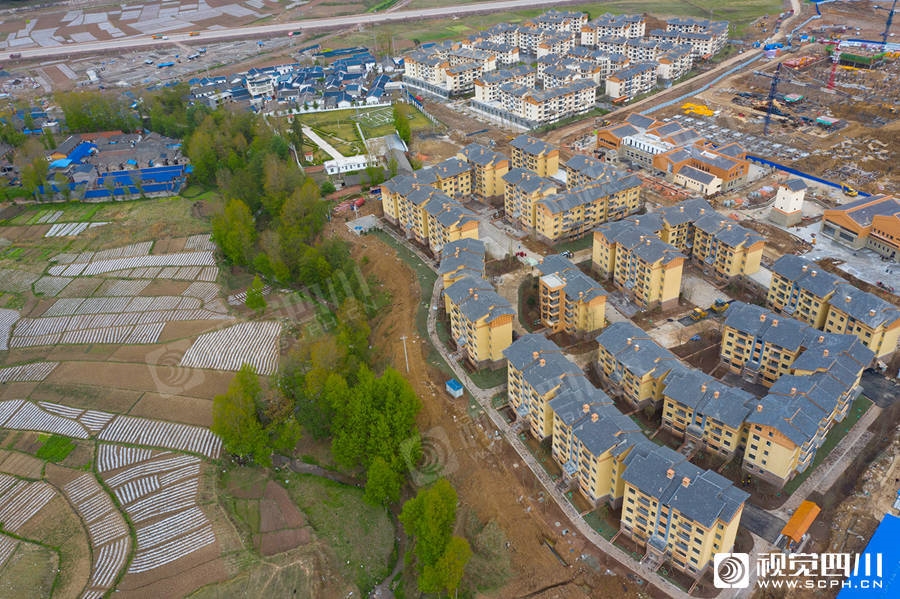 空中俯瞰昭觉县新城镇南坪村的“昭觉县易地扶贫搬迁县城集中安置项目”住宅小区。
