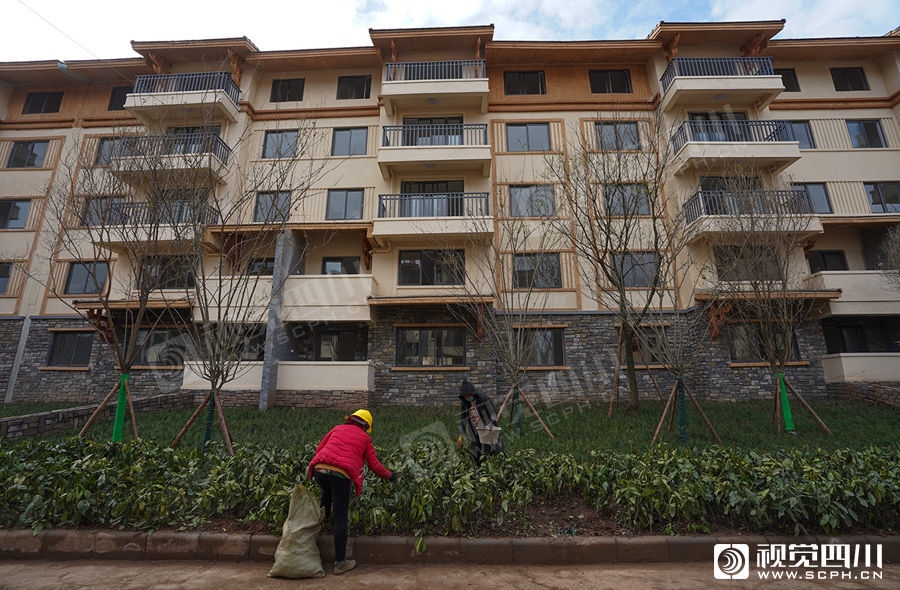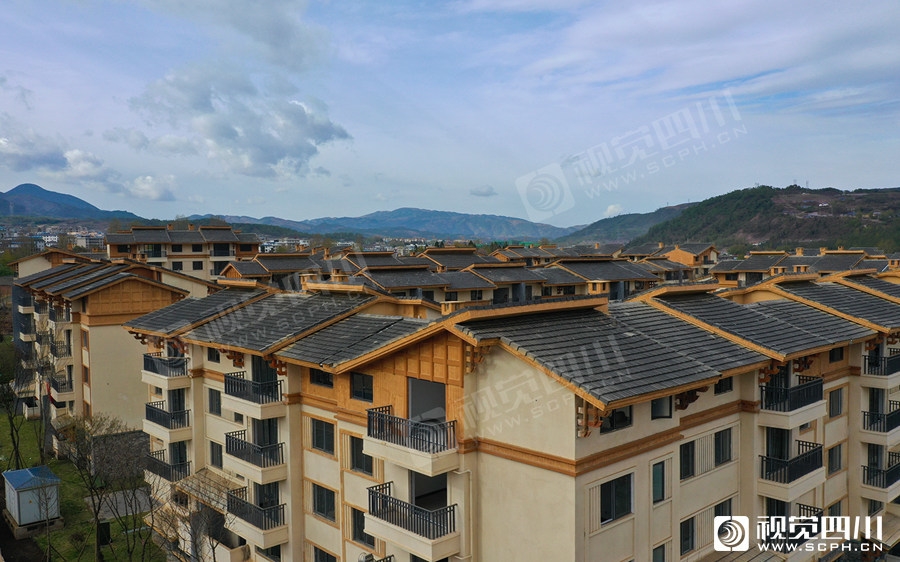 昭觉县新城镇南坪村的“昭觉县易地扶贫搬迁县城集中安置项目”住宅小区结合民族特色和现代建筑风格。